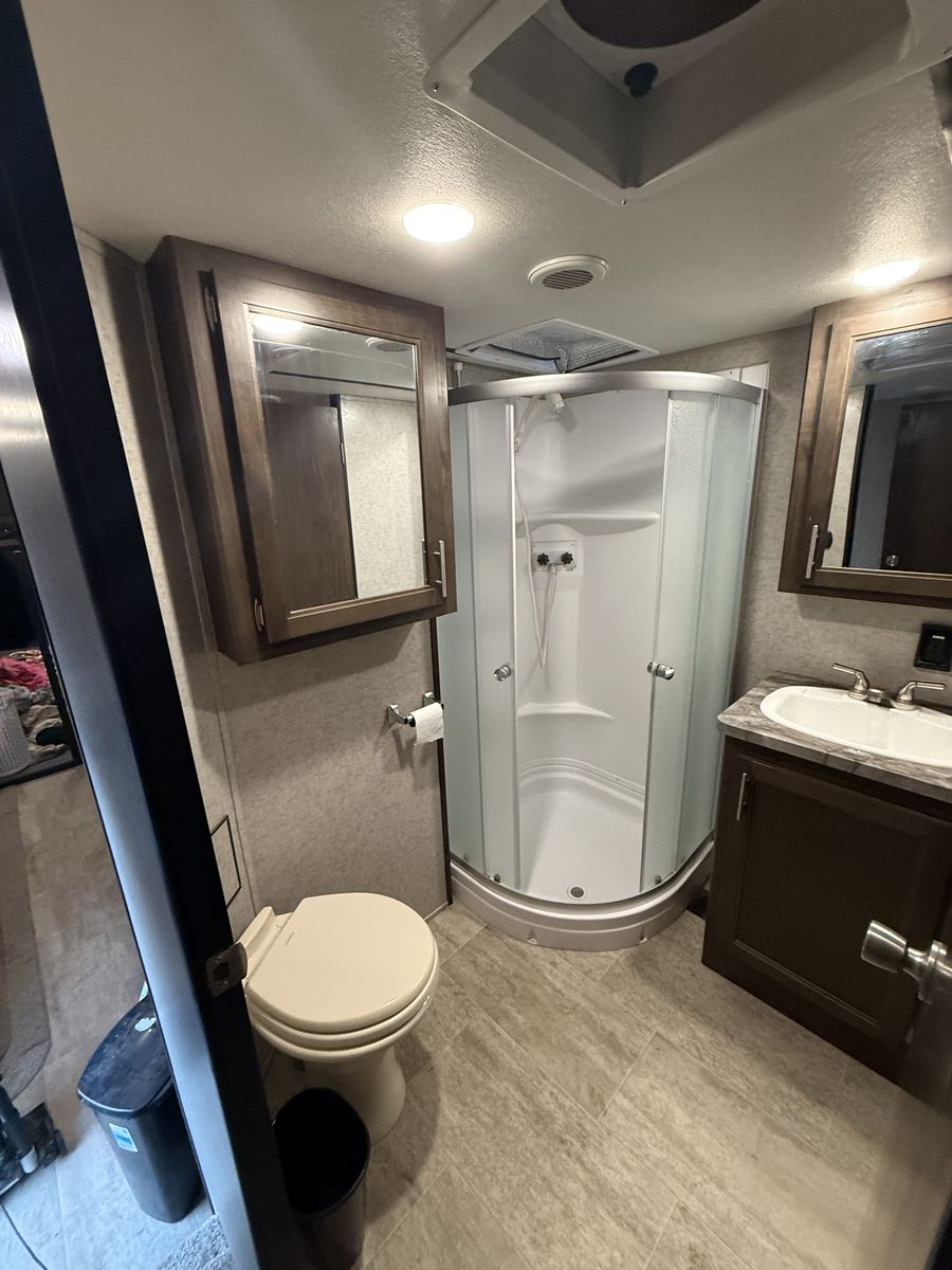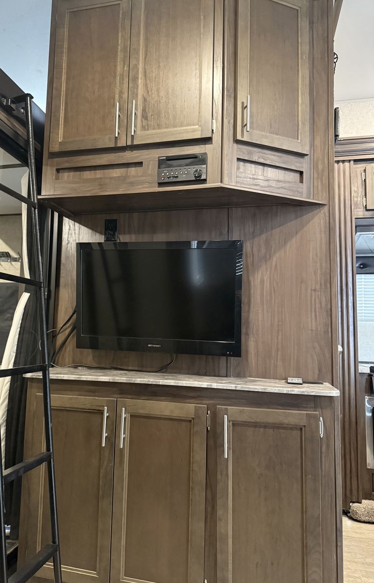 3 TVs DVD players + DVDs included Upgraded mattresses (sleep comfortably, not “RV basic”) Dual A/C units Gen Y Hitch included (big upgrade for towing stability & ride quality) lighted Flag pole, chalks, sewer hoses and connectors, Anderson front level pads, surge protector with adapter’s, and a few leveling blocks included. 6 new, 12 ply tires replaced last year. 2x 12v CAT Batteries, 1500 CCA each.