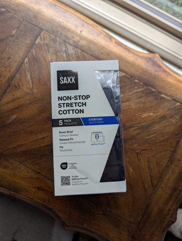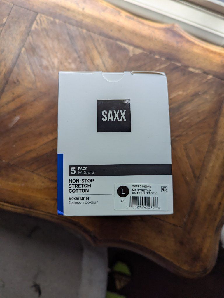 NEW, unopened box of 5 pairs of SAX underwear. Realized I got the wrong size after the return date passed. They're high quality. currently selling for $90+ on Amazon. purchases wrong size but couldn't return since I past the return by date