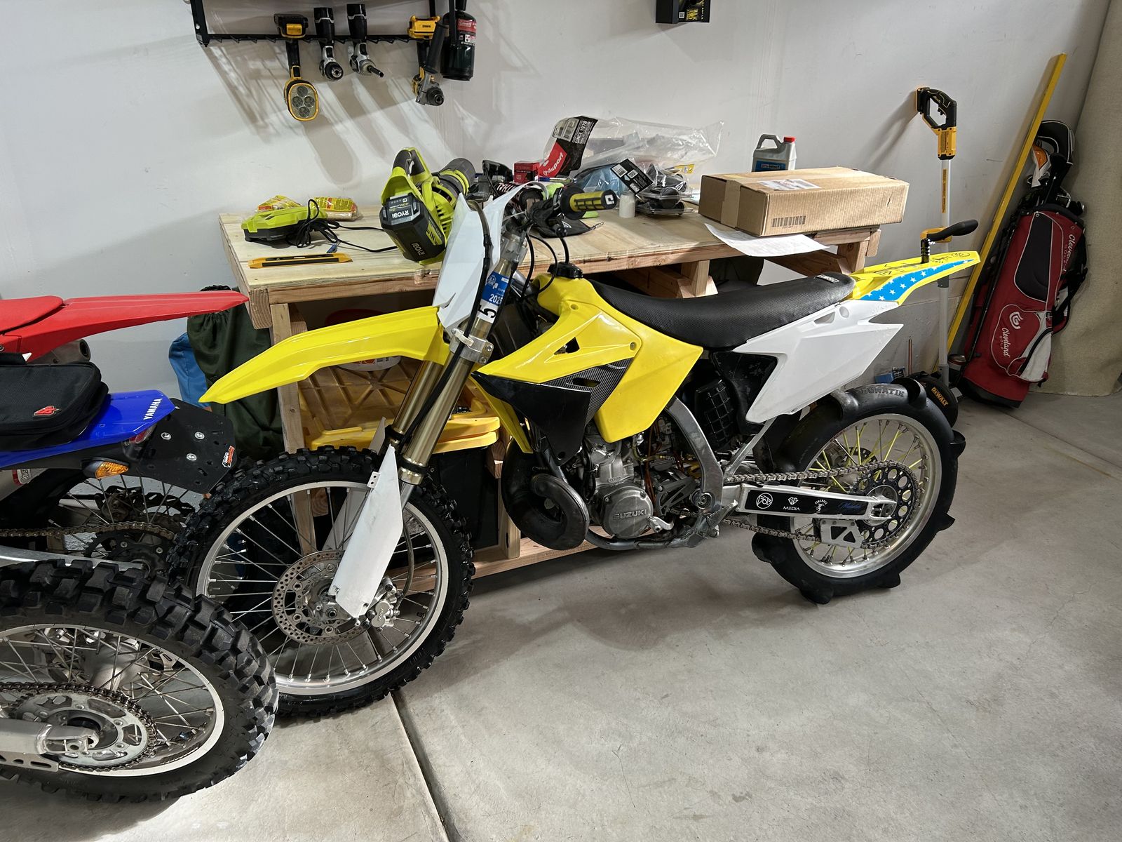 Nice RM 250, new fork seals and fluid. Runs very well. Comes with paddle tire and wheel as well as the dirt tire and wheel. FMF muffler as well.