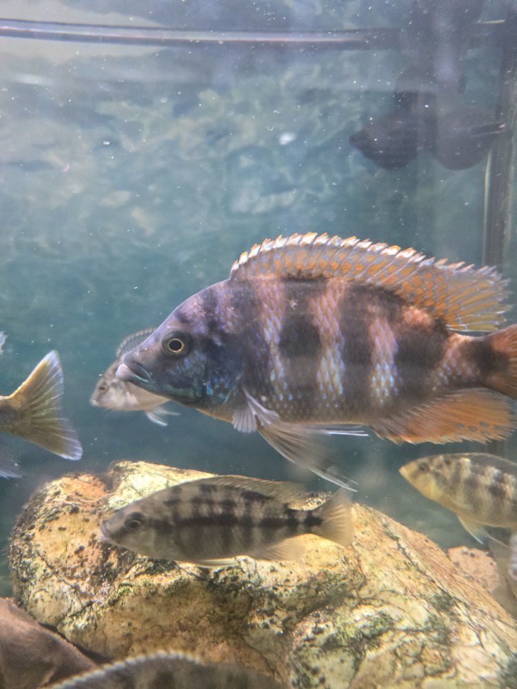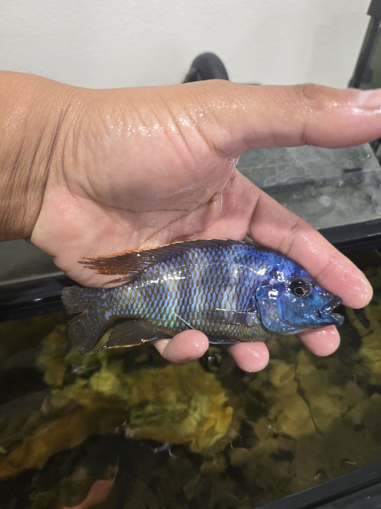VenmoThis cichlid is very healthy. I'm selling it because I have two males of the same species; the dominant one is the last one in the photo. I'll keep him, but this one I'm selling will also develop that color in a tank where there isn't another of its kind. It grew very well and is now almost 6 inches.