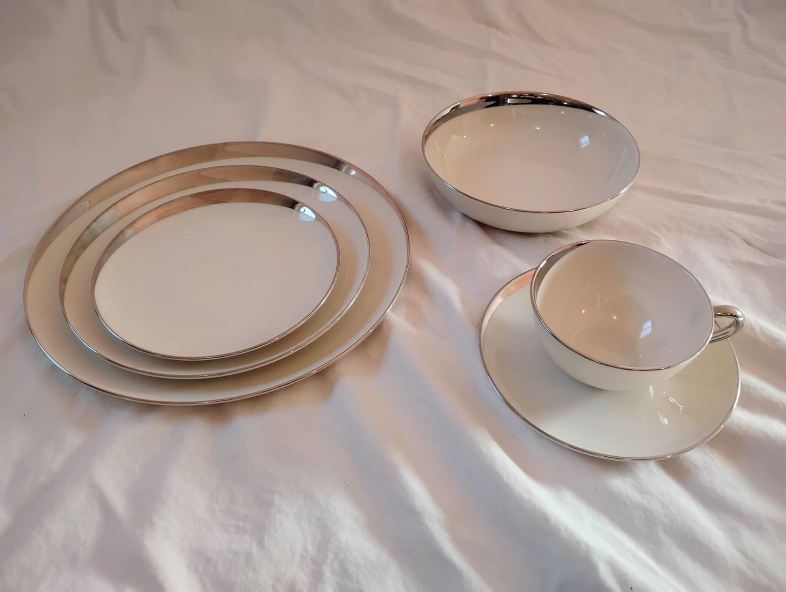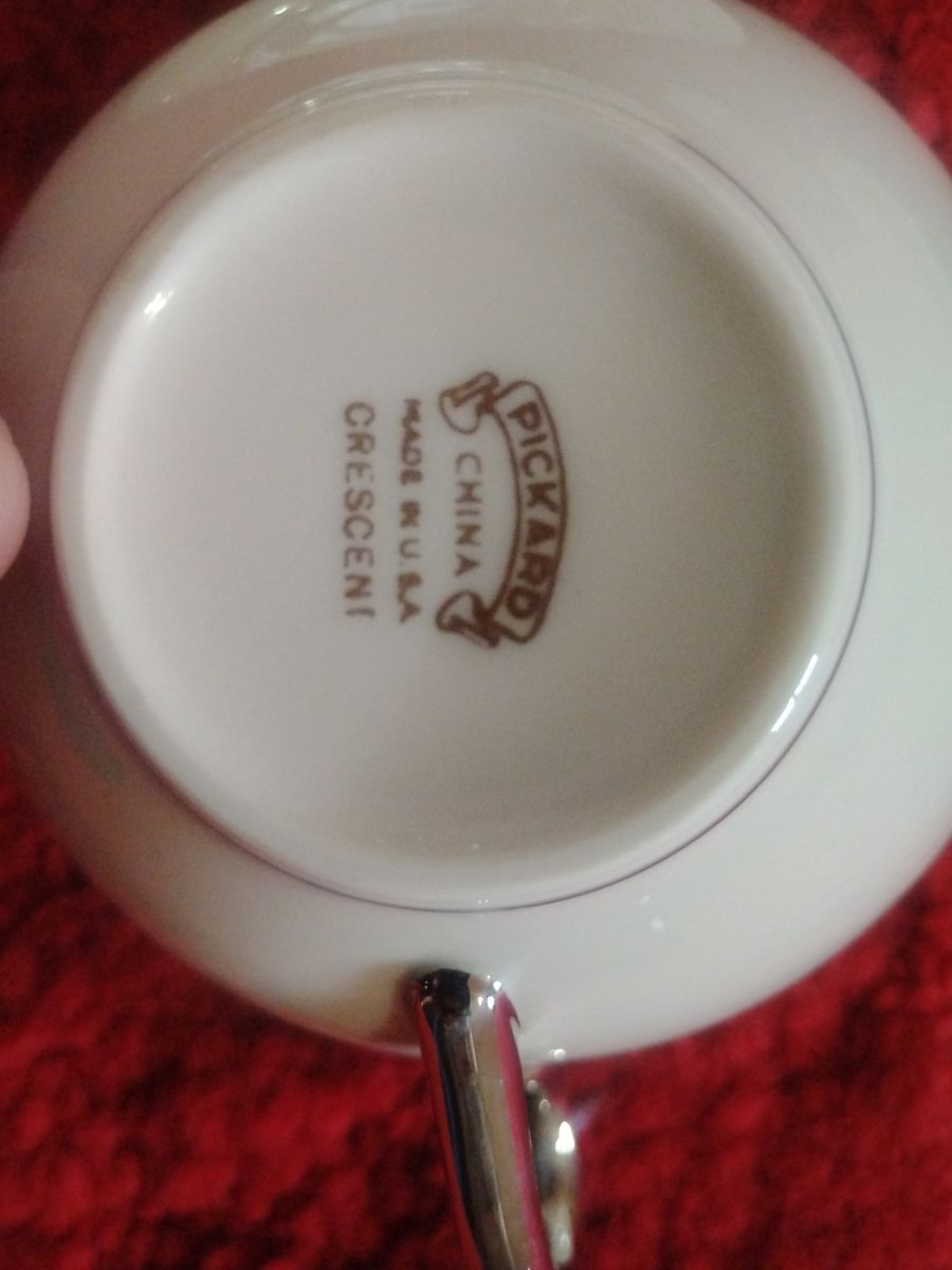ZellePickard Crescent 1123 When the White House gets new China, they call Pickard. Complete set for EIGHT in fantastic condition. Includes Bowls, Dinner, Salad and Bread Plates, and 8 Cups with Saucers. No chips, Beautiful complete set with 48 pieces.