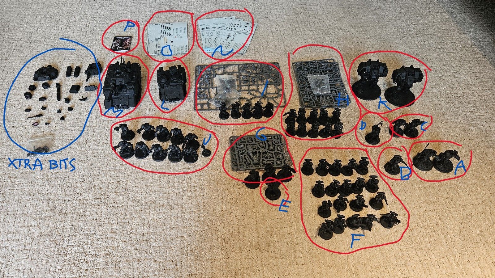 L) Primaris Impulsor:” 1x built (3d printed) + accessories