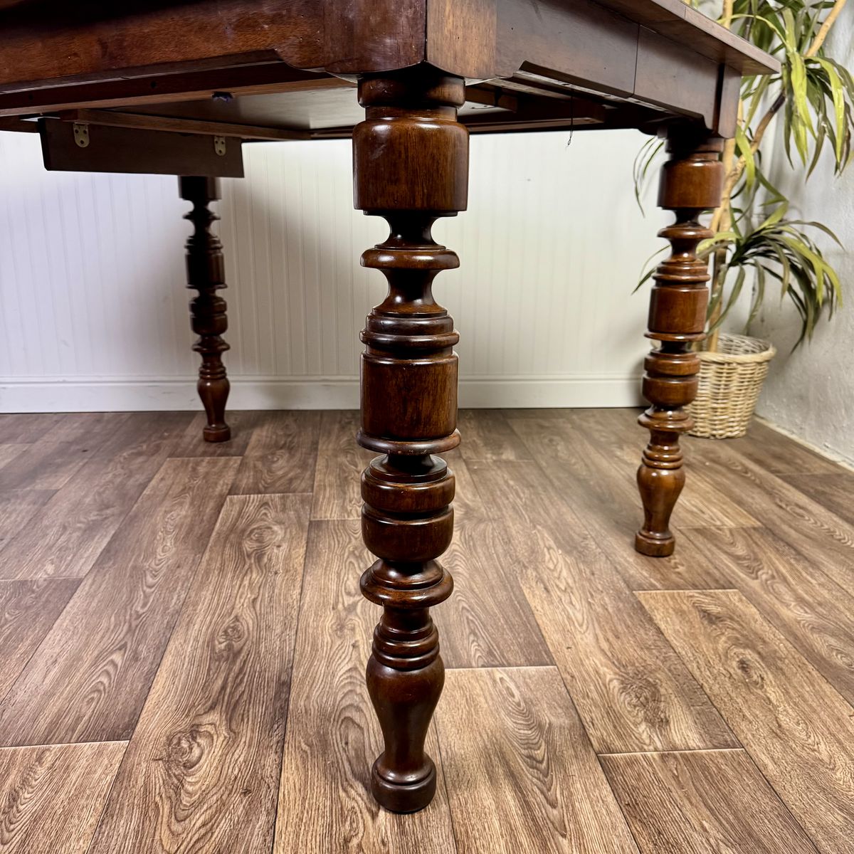 The table is structurally in great condition. The top shows some cosmetic wear consistent with family use. It has a beautiful lived-in character, or it would be an incredible candidate for a light refinish to look brand new.