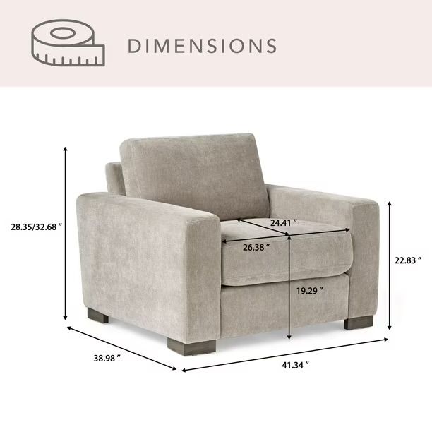 Features: • Durable, easy-to-clean fabric • High-density foam seat cushions • Solid wood legs • Comfortable padded armrests • Neutral color that fits most décor styles