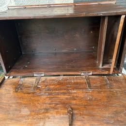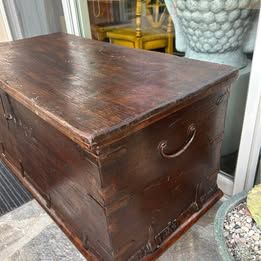 PayPalVintage solid wood English Dutch dowry. Originates from late 1800s solid wood in excellent condition. Would be excellent for a coffee table or at the foot of a bed. Brass fittings and joints. 18 deep x 37 long x 22 tall. Feet are 4 inches off the floor. $285