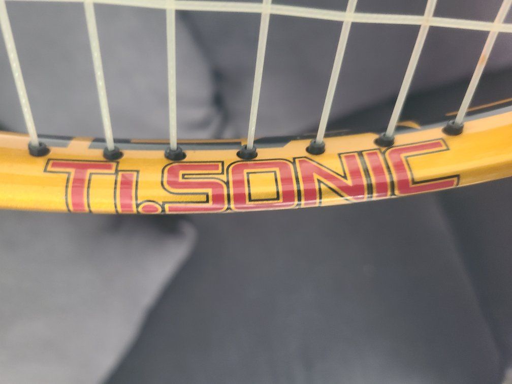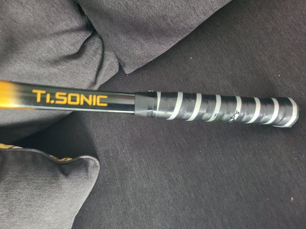 The Head Ti.Sonic Titanium Technology Tennis Racquet Racket is a high-performance sporting good designed for tennis enthusiasts. With a supersize grip size of 4 3/8”, this racket provides added control and stability during gameplay. The innovative titanium technology from HEAD enhances the overall durability and quality of the racquet, making it a top choice for competitive players looking for precision and power in their strokes.