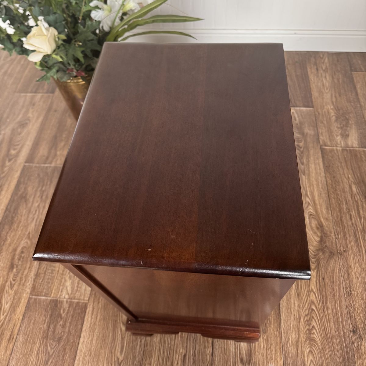 This is an heirloom-quality piece designed to last a lifetime. Its small size makes it incredibly versatile—perfect as a bedside nightstand, a statement entryway chest, or an accent piece in a home office.