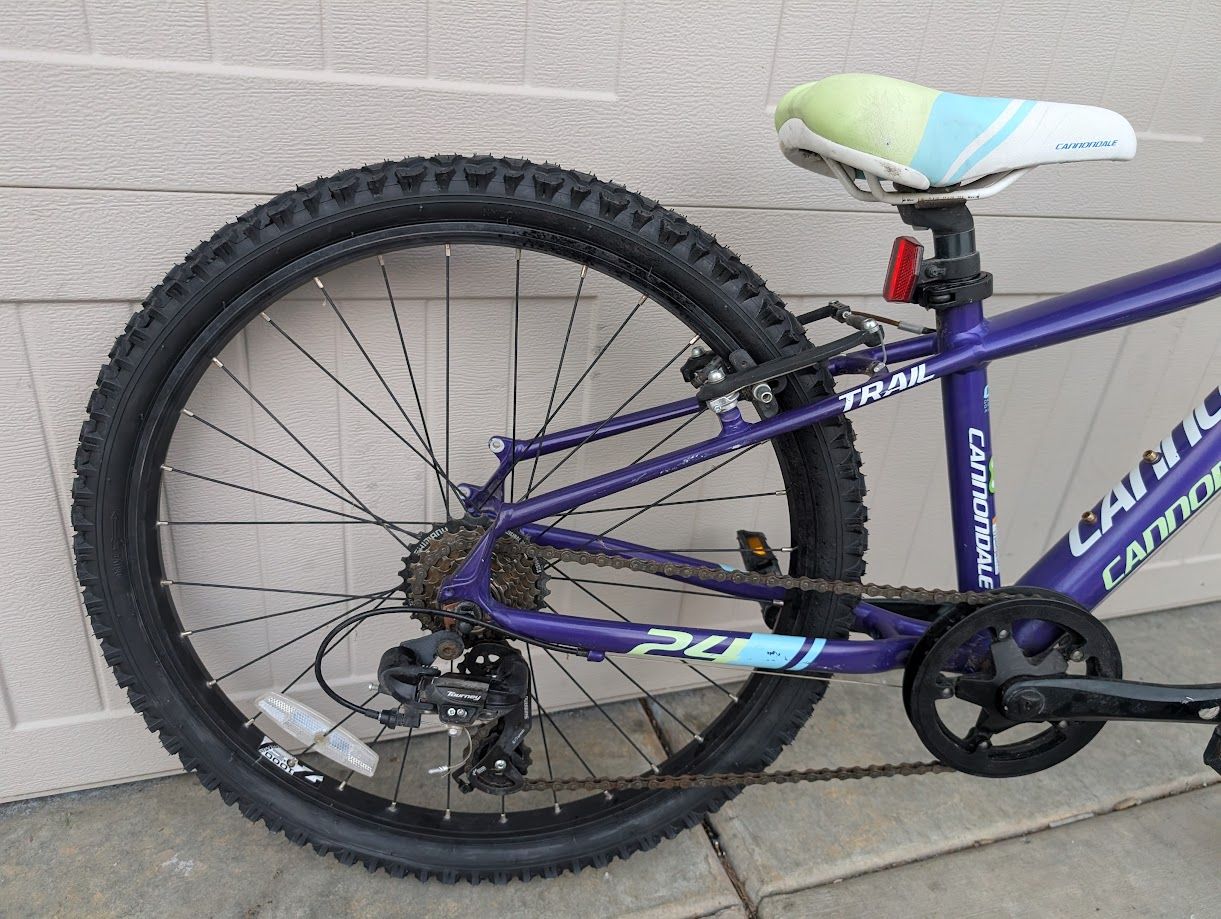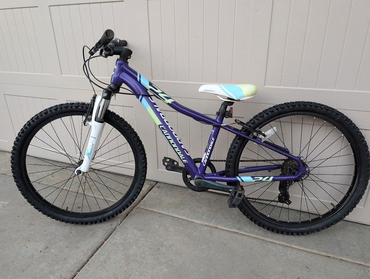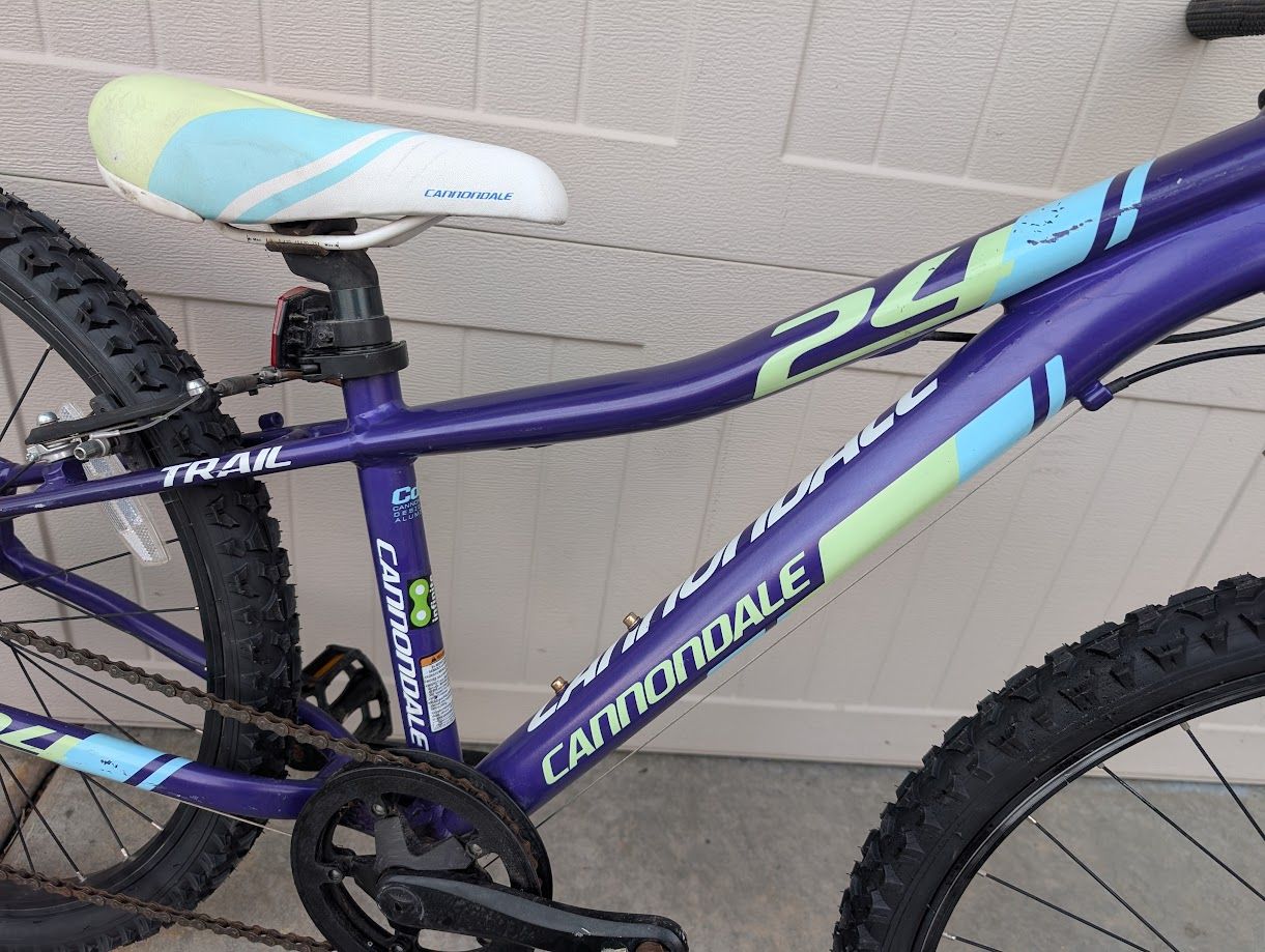 VenmoHere is a Cannondale trail 24. 1x7 speeds, shock and 24" wheels. New tires installed at recent tune-up. everything works great.