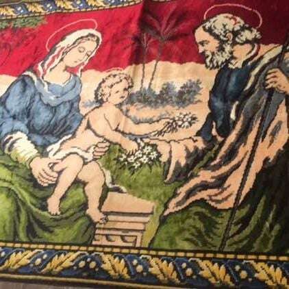 PayPalIn truly beautiful condition. MADE IN ITALY. RAYON COTTON. 4x6ft. Vintage Tapestry Jesus & Nativity in Beautiful Condition $195