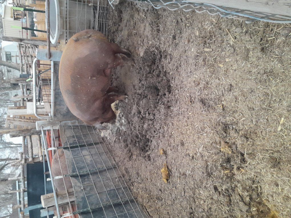 purebred duroc sow.bred to purebred Hampshire boar.due in 3 months.nice disposition.has gad 2 litters.wonderful mother.beautiful confirmation. super nice sow.very productive.