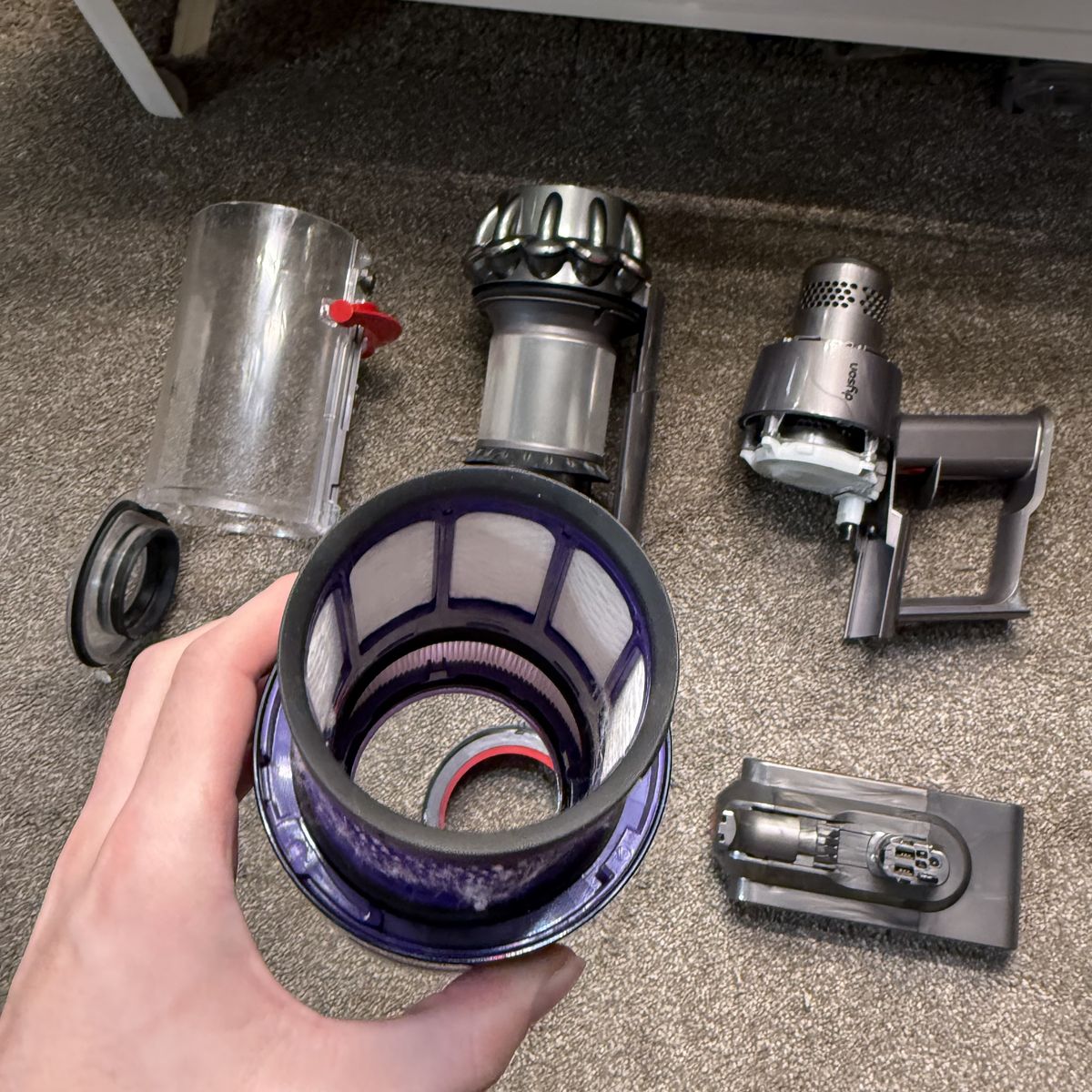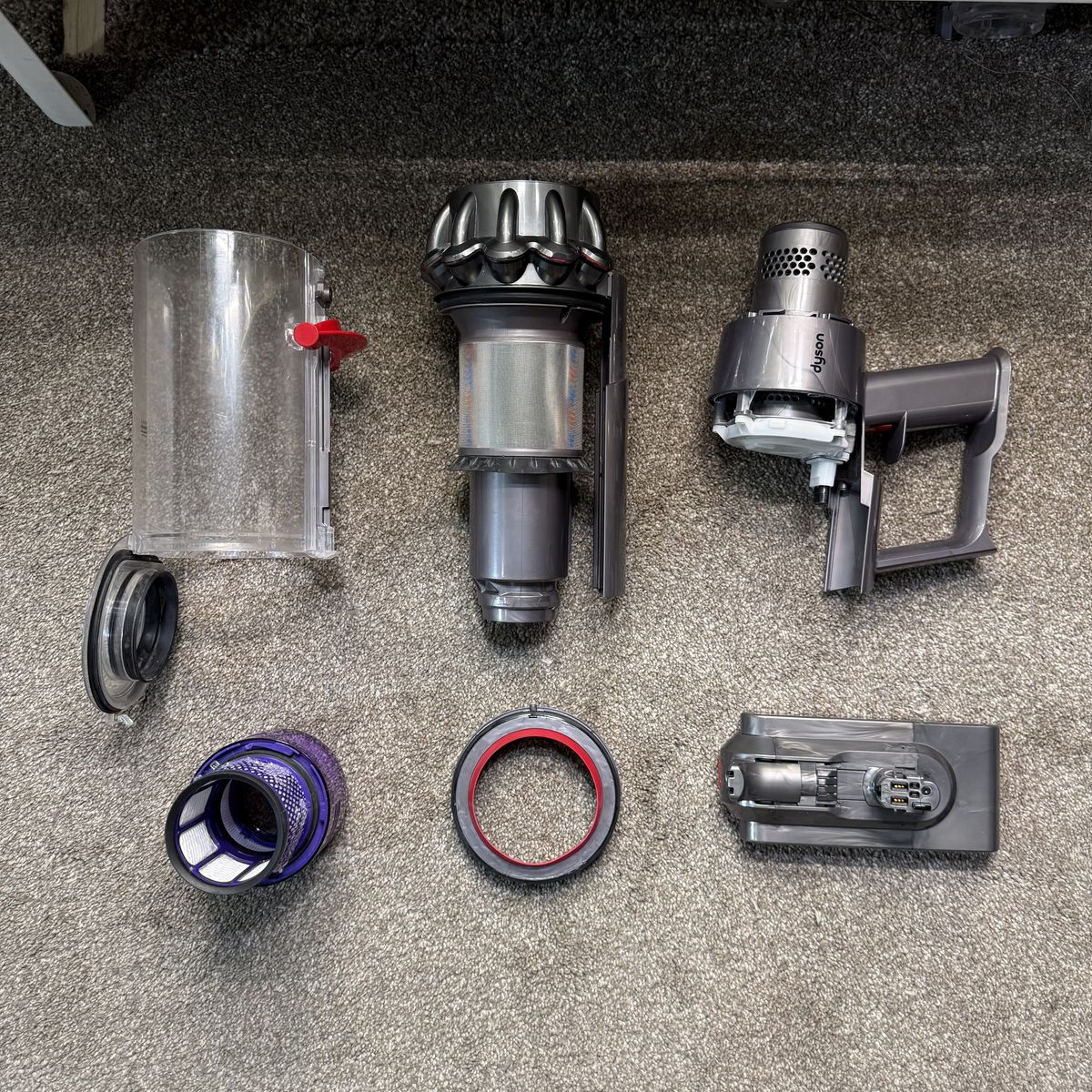 -This has been fully serviced by me, the cyclone has been fully disassembled and washed, the bin, filter and brush roll all been washed as well, cleaner head fully disassembled, all common issue spots addressed. (SEE PICS 2,3,4,6) Genuine Dyson filter, replacements are horrible for the vacuum