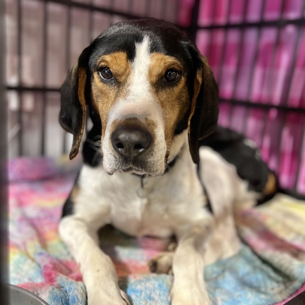 Calling all hound lovers—Herschel is ready to steal your heart. This gentle, sweet boy is a true hound at heart and absolutely loves his walks, especially when he gets to follow his nose wherever it leads. Watching Herschel enjoy a good sniffari is pure joy. Herschel previously lived with another dog and would make a wonderful companion for your canine fur child. He has an easygoing, friendly nature. Big comfy dog beds and couches have his name all over it after his nose is ready to retire. While he’s been surprisingly quiet for a hound, we’re pretty sure that classic, lovable baaaayyy is in there somewhere—just waiting for the right moment. If you’re looking for a kind, loyal walking buddy with soulful hound charm, Herschel may be the perfect match for your home.
