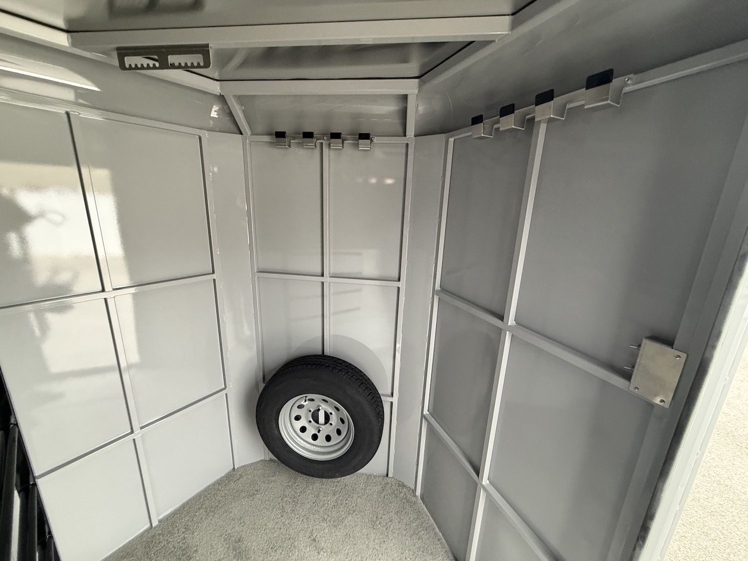 Convenience Package - swing-out saddle rack, spare tire, water tank, door mounted tack organizer, sport bag, load light each side and rear gate