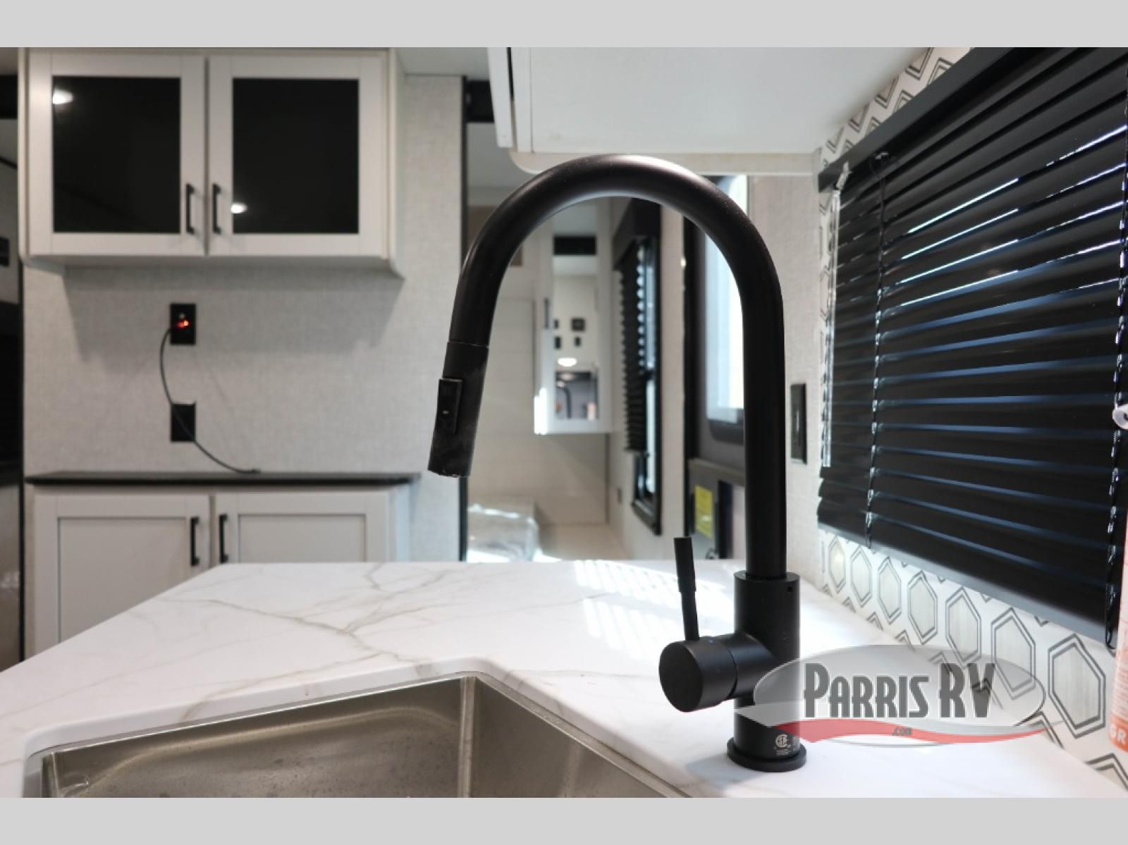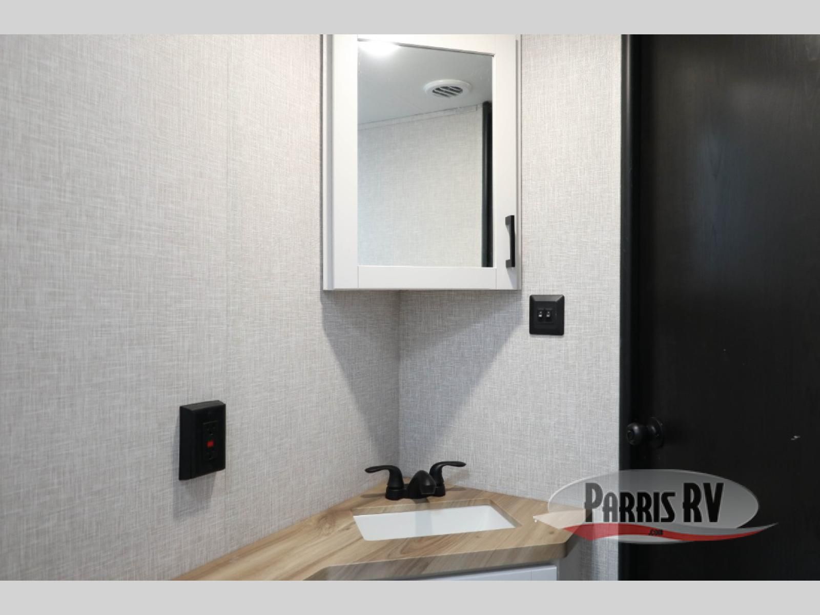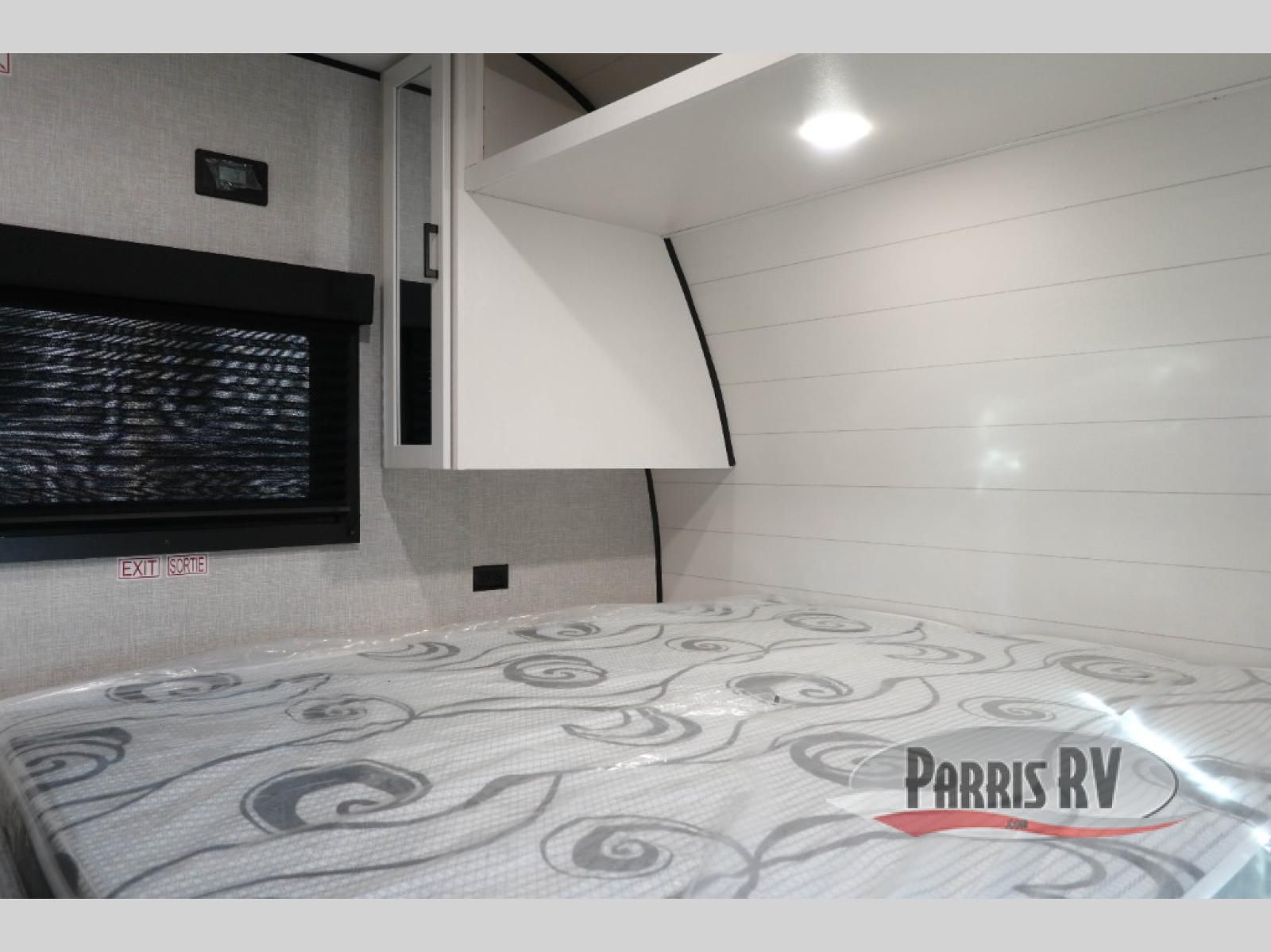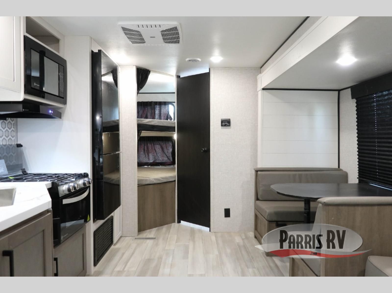 You're going to love every minute spent in this spacious travel trailer. The booth dinette and jack-knife sofa within the large slide out will be perfect for meal times, relaxing, and additional sleeping space. Add the optional Smart TV to the entertainment center and you're set up for movie night! This model includes an outside kitchen with a griddle and a refrigerator for cold drinks, plus indoor appliances if the rain has ruined your plans for the day. You will enjoy your own bedroom up front with space-saving sliding doors and two wardrobes for your clothes.