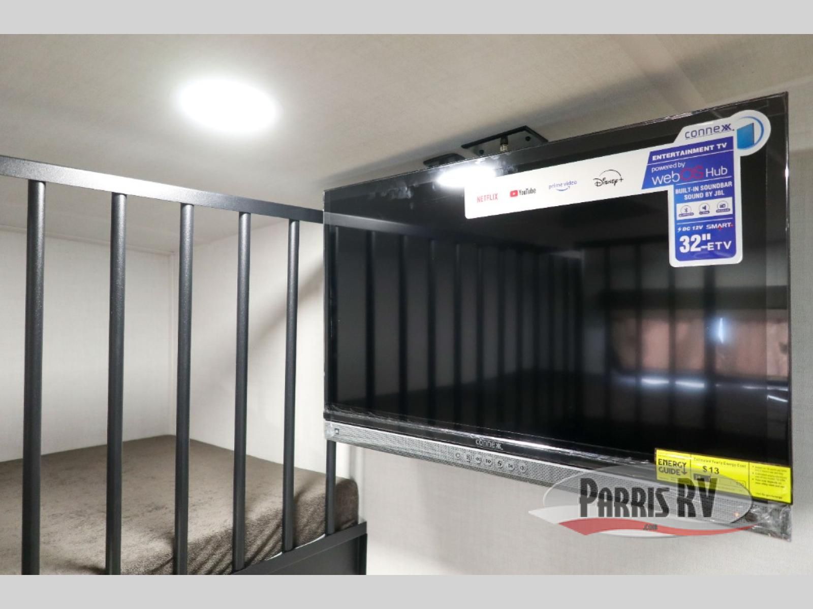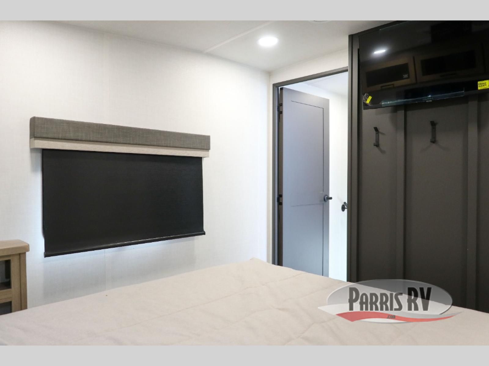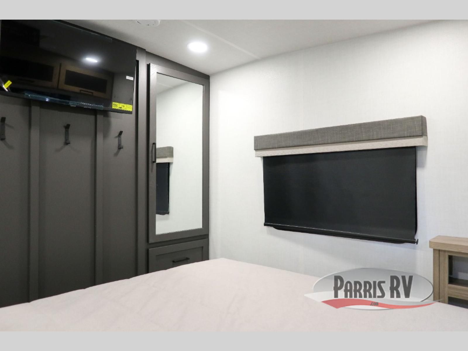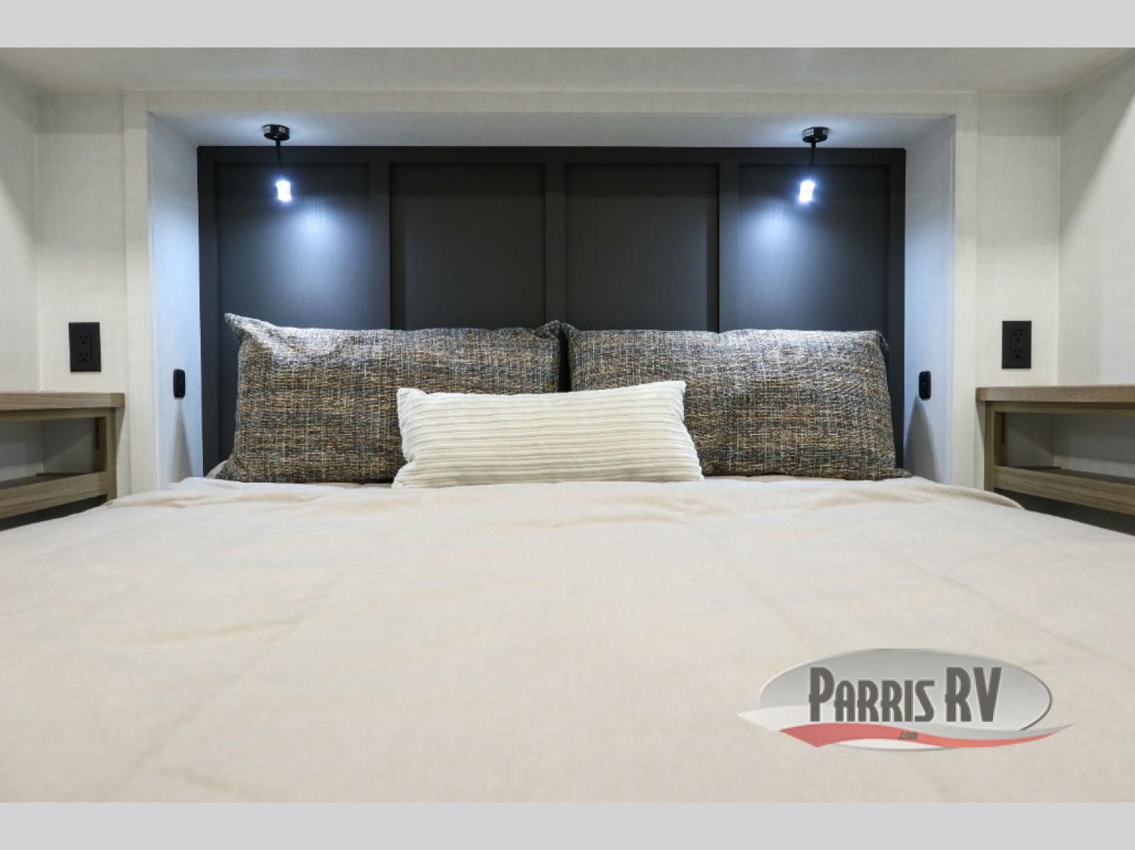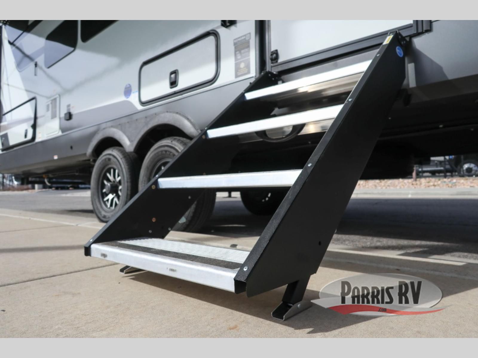 Looking to travel with your family and friends and need lots of space for everyone? This fifth wheel offers a front private bedroom with a queen bed, a spacious wardrobe, and a TV option for shows in bed. On the opposite side of the unit there is a private bunkhouse with triple bunks, plus washer and dryer prep. The main living and kitchen area includes a slide out which offers a king U-shaped dinette to dine at, play games with friends, and provides sleeping if needed, plus a 12V refrigerator and a pantry. There is also a 55" theater seat here for more comfort. The cook will have full amenities indoors plus an outside kitchen when the weather is nice. There are also two power awnings, Solid Entry steps, a rear 2" towing hitch, and more exterior conveniences!