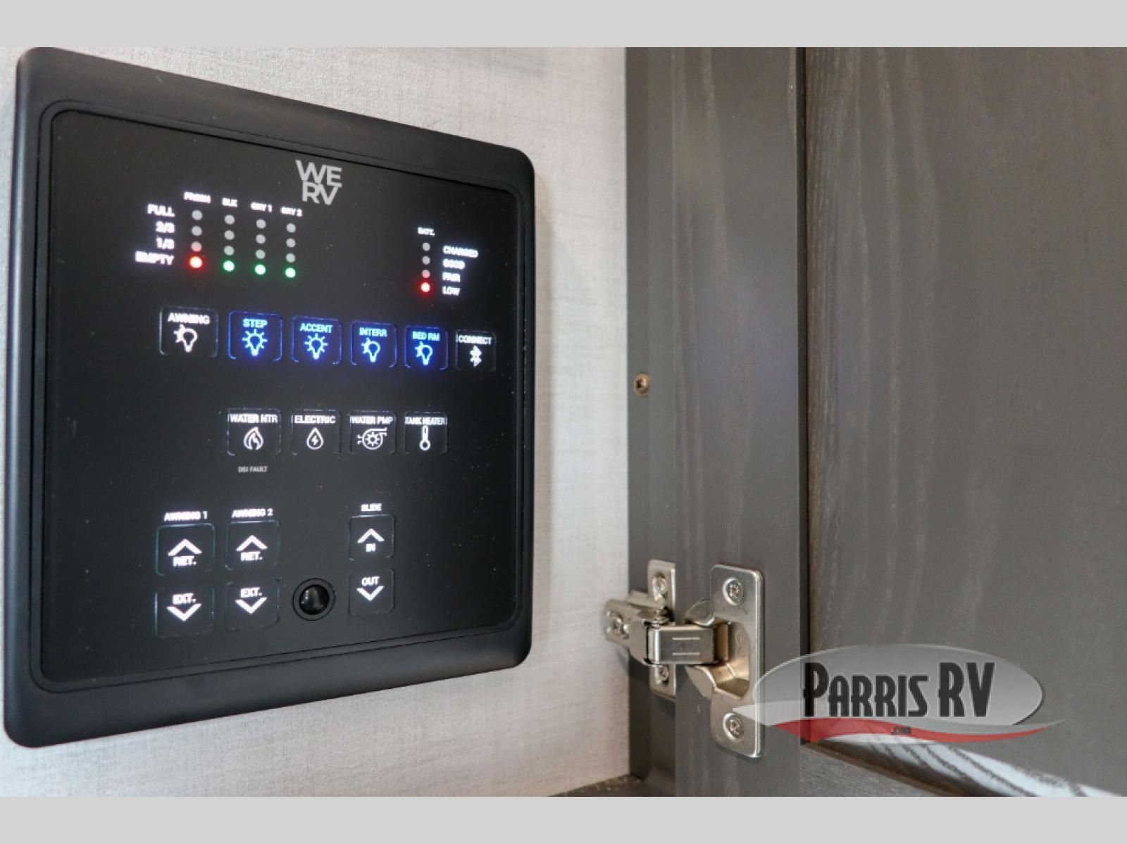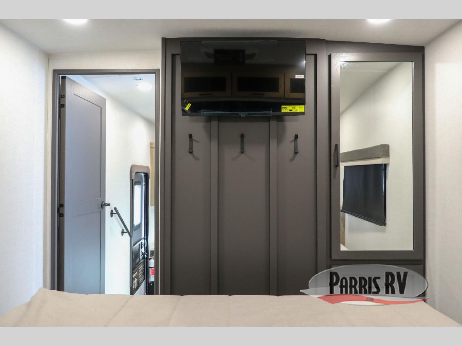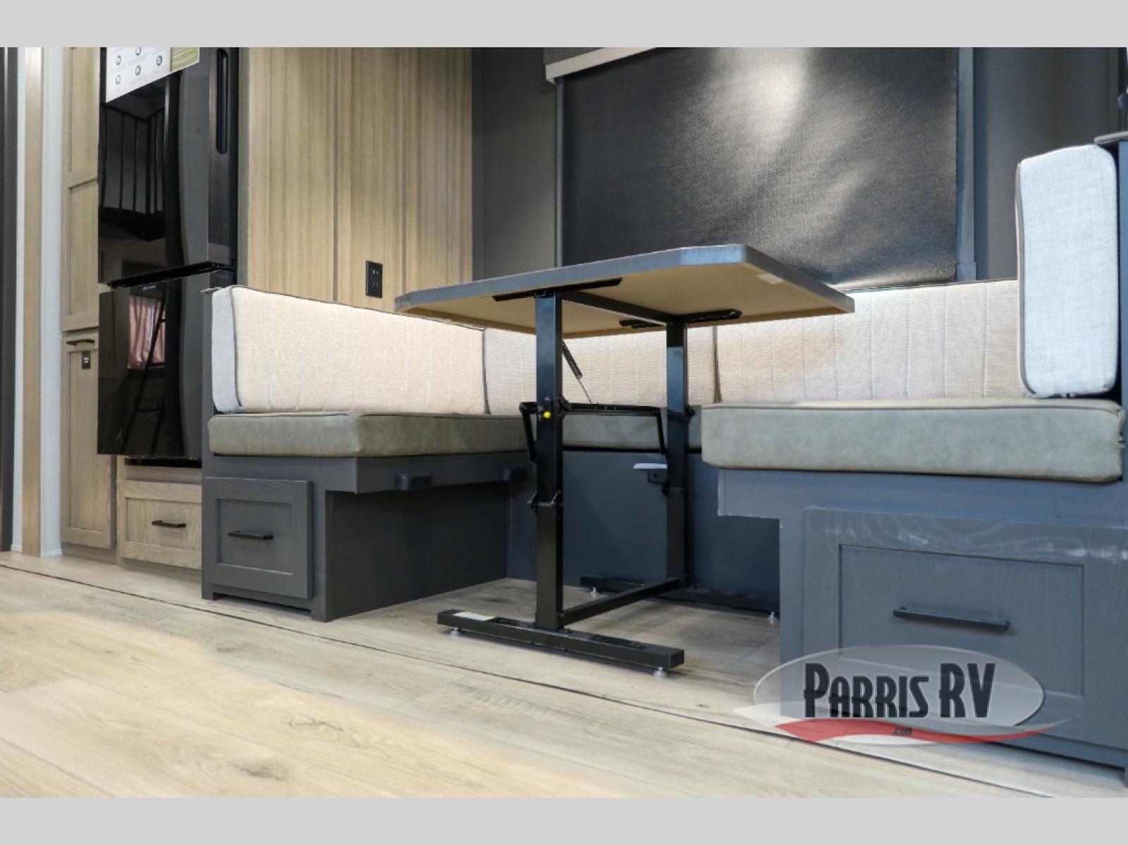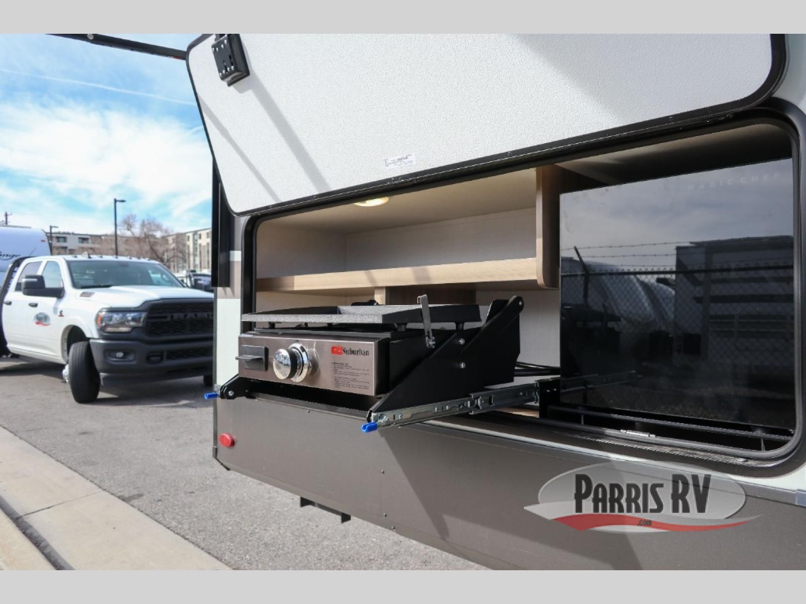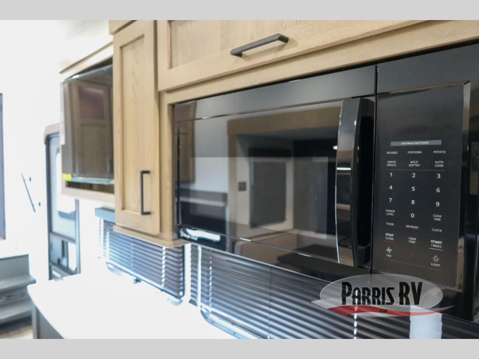 Looking to travel with your family and friends and need lots of space for everyone? This fifth wheel offers a front private bedroom with a queen bed, a spacious wardrobe, and a TV option for shows in bed. On the opposite side of the unit there is a private bunkhouse with triple bunks, plus washer and dryer prep. The main living and kitchen area includes a slide out which offers a king U-shaped dinette to dine at, play games with friends, and provides sleeping if needed, plus a 12V refrigerator and a pantry. There is also a 55" theater seat here for more comfort. The cook will have full amenities indoors plus an outside kitchen when the weather is nice. There are also two power awnings, Solid Entry steps, a rear 2" towing hitch, and more exterior conveniences!