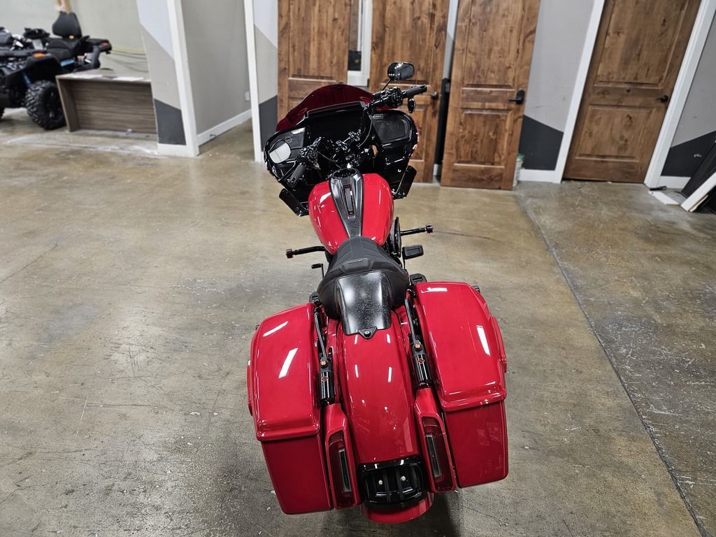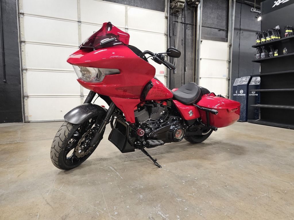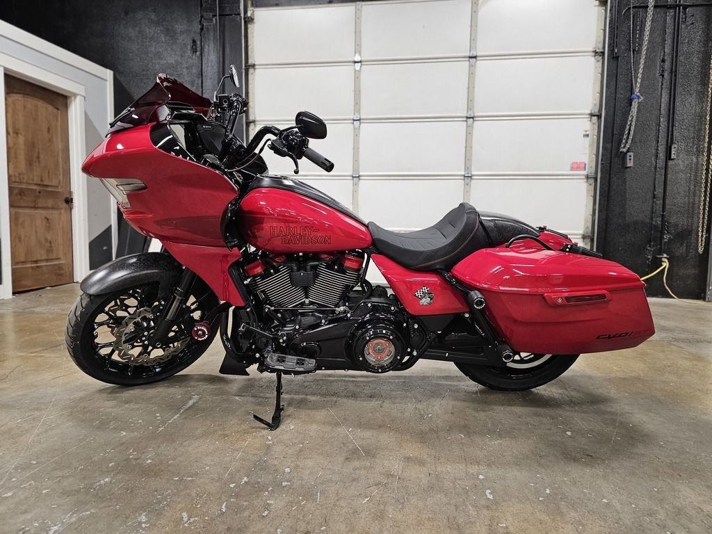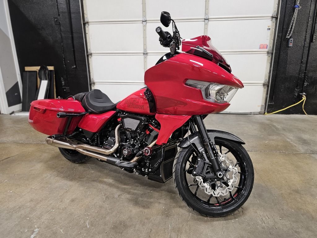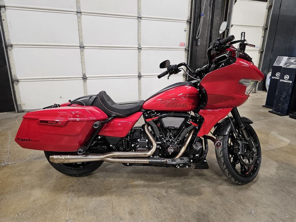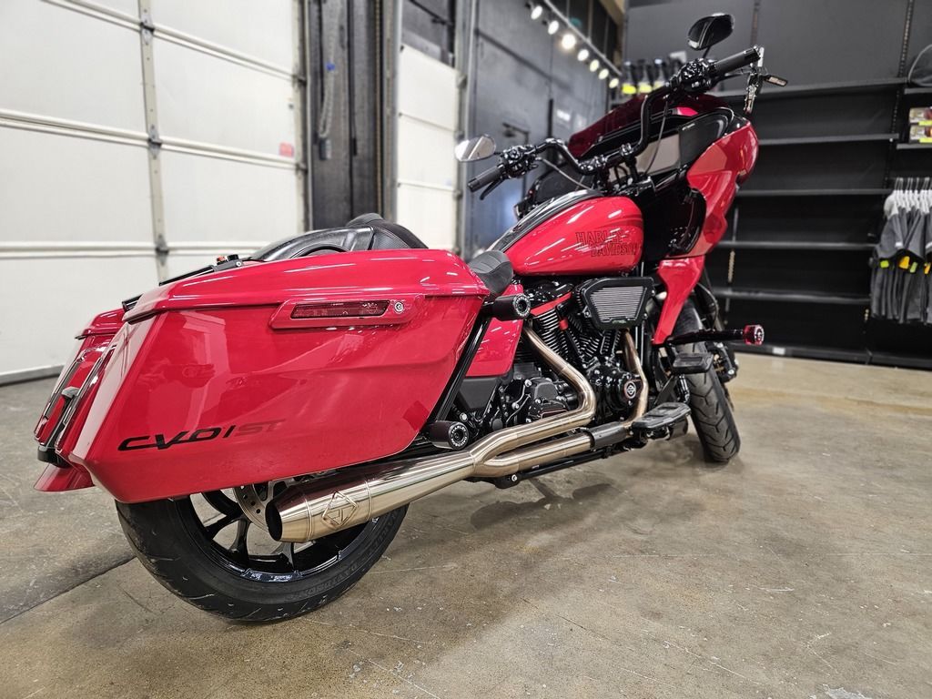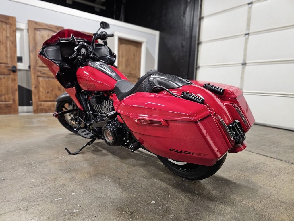 2025 Harley-Davidson® CVO™ Road Glide® ST Features may include: DESIGN Premium Paint Screamin’ Eagle graphic flows from the sides of the fairing into the fuel tank, and Performance Red pops throughout the powertrain. Solo Seat The lightweight and aggressive solo seat is comfortable, with a steep back to provide lower-back support in hard launches and grip during cornering. Forged Carbon Fiber Front Fender Forged carbon fiber replaces the typical steel front fender, cutting weight with a race-inspired, ultra-premium finish. PERFORMANCE Milwaukee-Eight® 121 HO Engine With 127 horsepower and 145 ft-lb of torque, this is the strongest factory-installed engine ever used in a production Harley-Davidson, with a high-performance camshaft, Heavy Breather Intake, and rev limit increased to 5,900 rpm. Front Forks With 4.6 inches of travel, the fully adjustable SHOWA® 47mm inverted forks can be precisely tuned for compression, rebound, and preload to suit your comfort level and riding style. Rear Shocks Dual outboard SHOWA® Remote Reservoir shocks with three inches of travel, positioned between the saddlebags and rear fender, keep oil and gas separated for consistent performance under demanding conditions. INNOVATION 12.3-Inch TFT Display + Skyline™ OS The large, bright touchscreen display provides gauges, ride modes, and navigation with traffic and weather overlays. It gives easy access to the Rockford Fosgate Stage II audio system, Ride Modes, and Rider Safety Enhancements, all at the touch of a finger. Ride Modes Eight available ride modes give you more options for precise tuning on the go. Track and Track + mode unlock levels of performance reserved for closed-course riding and race use.