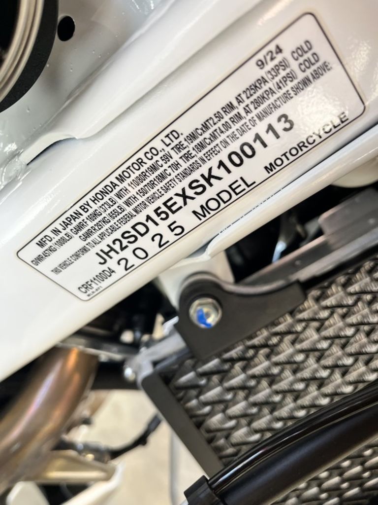 2025 Honda® Africa Twin Adventure Sports ES DCT ADVenture beyond limits Adventure calls in two options: the Africa Twin and Africa Twin Adventure Sports ES. Both pack a powerful 1083cc engine and long-distance comfort, plus optional DCT. The standard model journeys off-road with its 21-inch front tire, while the Adventure Sports ES goes the road route with electronic suspension and a 19-inch front wheel. Your journey starts here! Features may include: 1083cc twin-cylinder engine A narrow 1083cc parallel-twin engine delivers torque smoothly throughout the RPM range, making them great for everything from off-road riding to highway cruising. Cruise control All Africa Twin models come factory-equipped with cruise control for touring, and you’ll thank us after those high-mileage rides. Low center of gravity By placing heavy components like the battery near the bike's center of gravity and using a compact engine, we've created a platform for excellent handling. TFT touchscreen display A 6.5-inch Thin Film Transistor (TFT) instrument touch panel features three displays and can show a multitude of information, depending on your needs. Selectable ABS These bikes come with a three-mode Anti-Lock Braking System (ABS): On-Road, Off-Road, and a rear ABS removable mode that can be turned off for dirt riding. Riding modes Both models offer six selectable riding modes: Tour, Urban, Gravel, Off-Road, User 1, and User 2. The last two allow you to customize them to your individual preferences. Apple CarPlay™ and Android Auto™ Apple CarPlay™ and Android Auto™ are standard on all models and seamlessly integrate with your mobile device, allowing easy access to calls, texts, maps, music, and more.