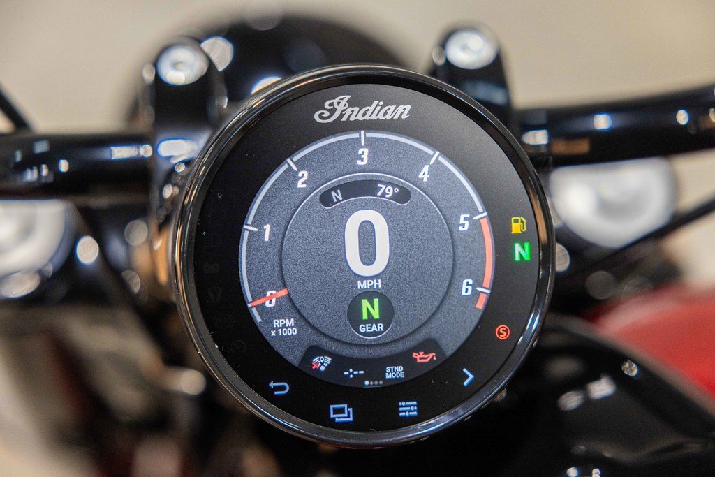 Up front, the illuminated headdress shines from the valanced fender—a hallmark of Indian Motorcycle since 1947 and a detail that still turns heads at every stoplight.