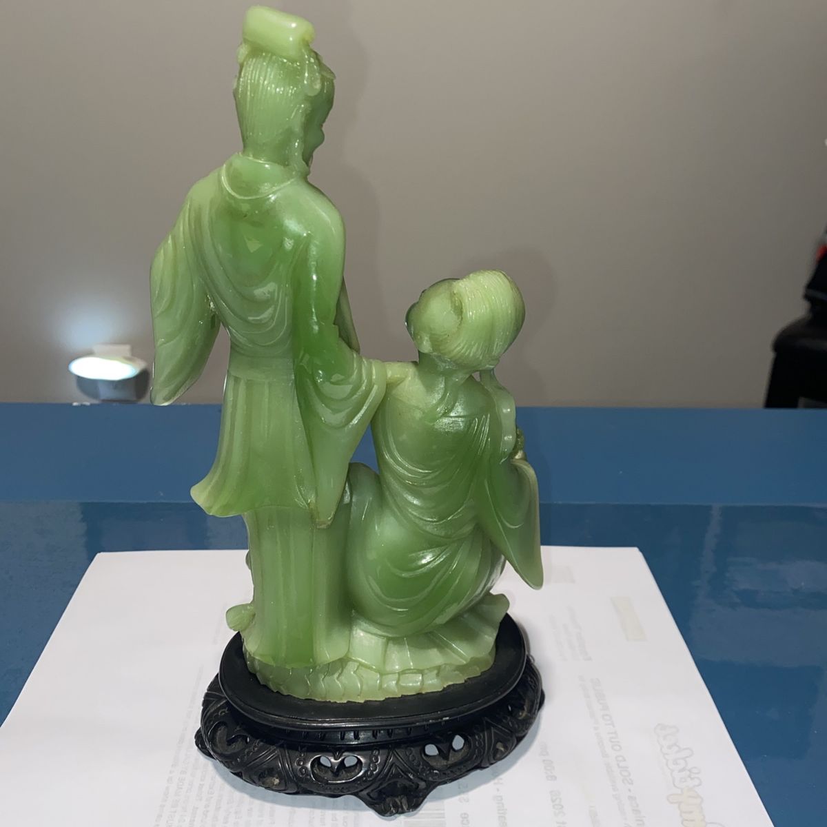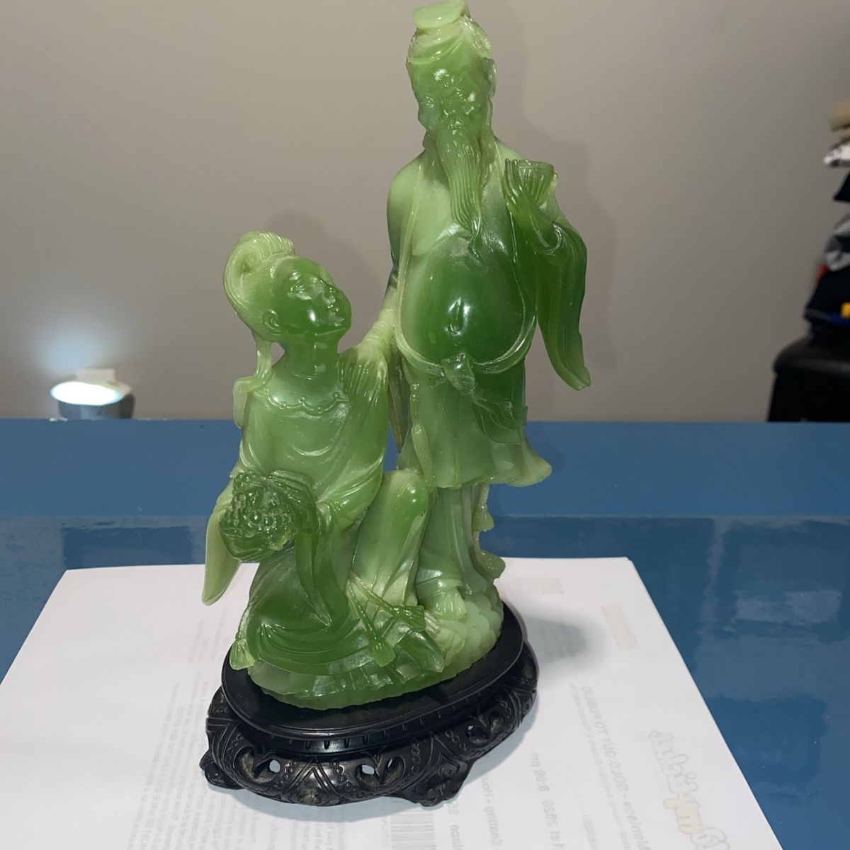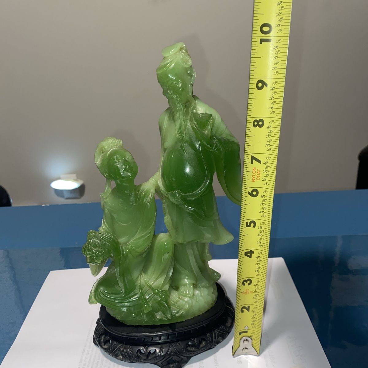 VenmoThis decorative sculpture was produced in Italy during the mid-to-late 20th century as part of a trend of creating affordable Asian-inspired decorative objects for Western markets. Made from resin and finished to imitate natural jade, these pieces allowed collectors to enjoy the aesthetic of carved jade without the high cost of authentic stone. The romantic theme of lovers reflects the Western fascination with Oriental motifs and romantic imagery that was popular in home décor during the 1960s-1980s. Such pieces were mass-produced by Italian manufacturers like Wony, who specialized in faux jade and other decorative resin sculptures. These vintage resin sculptures appeal to collectors of mid-century decorative arts, Asian-inspired home décor, and Italian manufactured collectibles. They are valued for their nostalgic charm, craftsmanship in resin casting, and their role in documenting the cross-cultural aesthetic trends of the period. Collectors of vintage home décor and those interested in the history of mass-produced decorative arts find these pieces both affordable and historically interesting. Cash or Venmo only - I’m in Mapleton but work in Utah & Salt Lake County daily and could meet near you. Thanks for looking! Well cared for in a curio cabinet. It is beautiful.