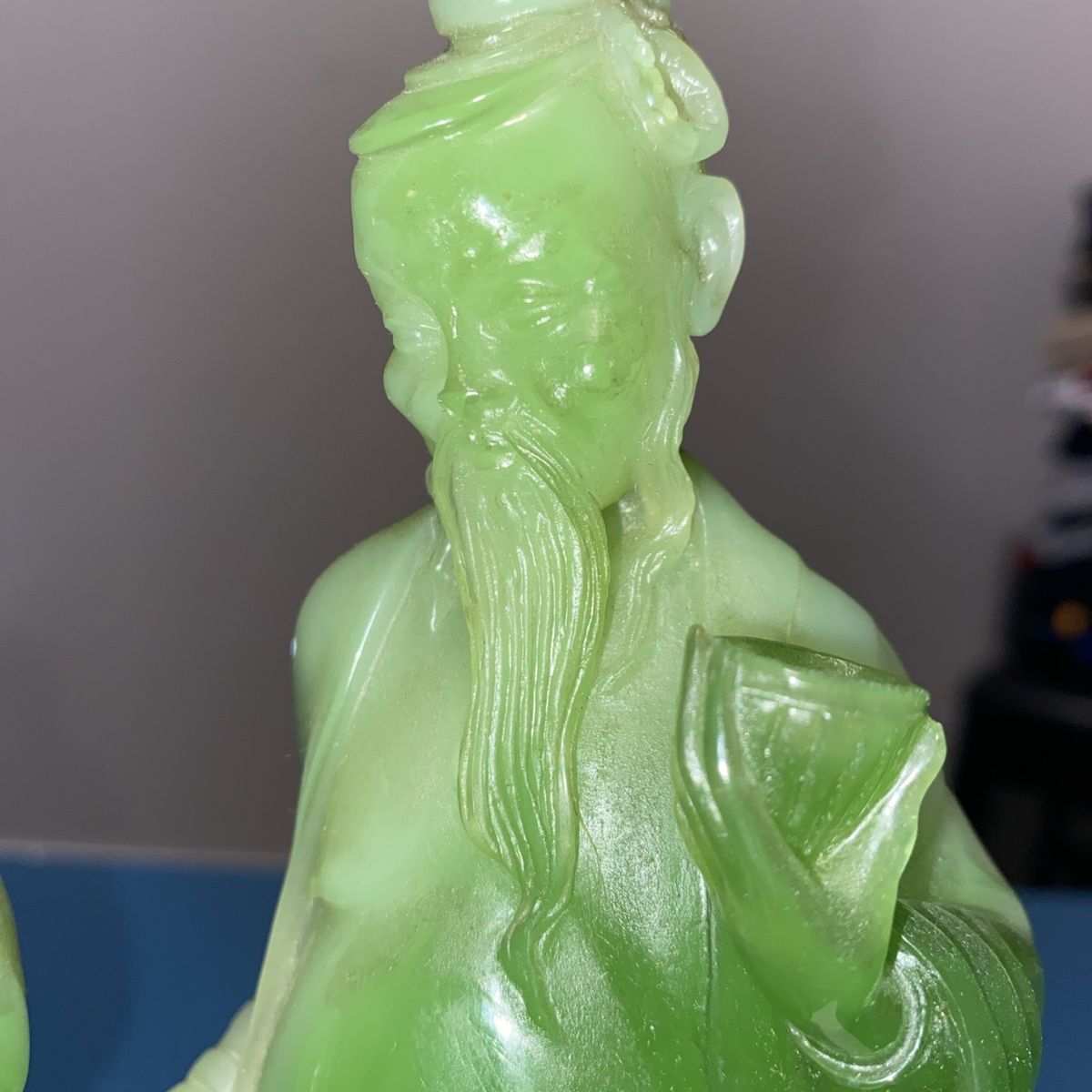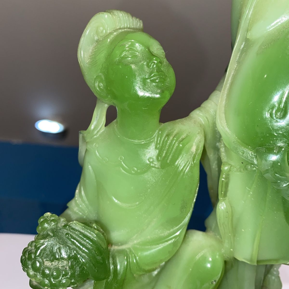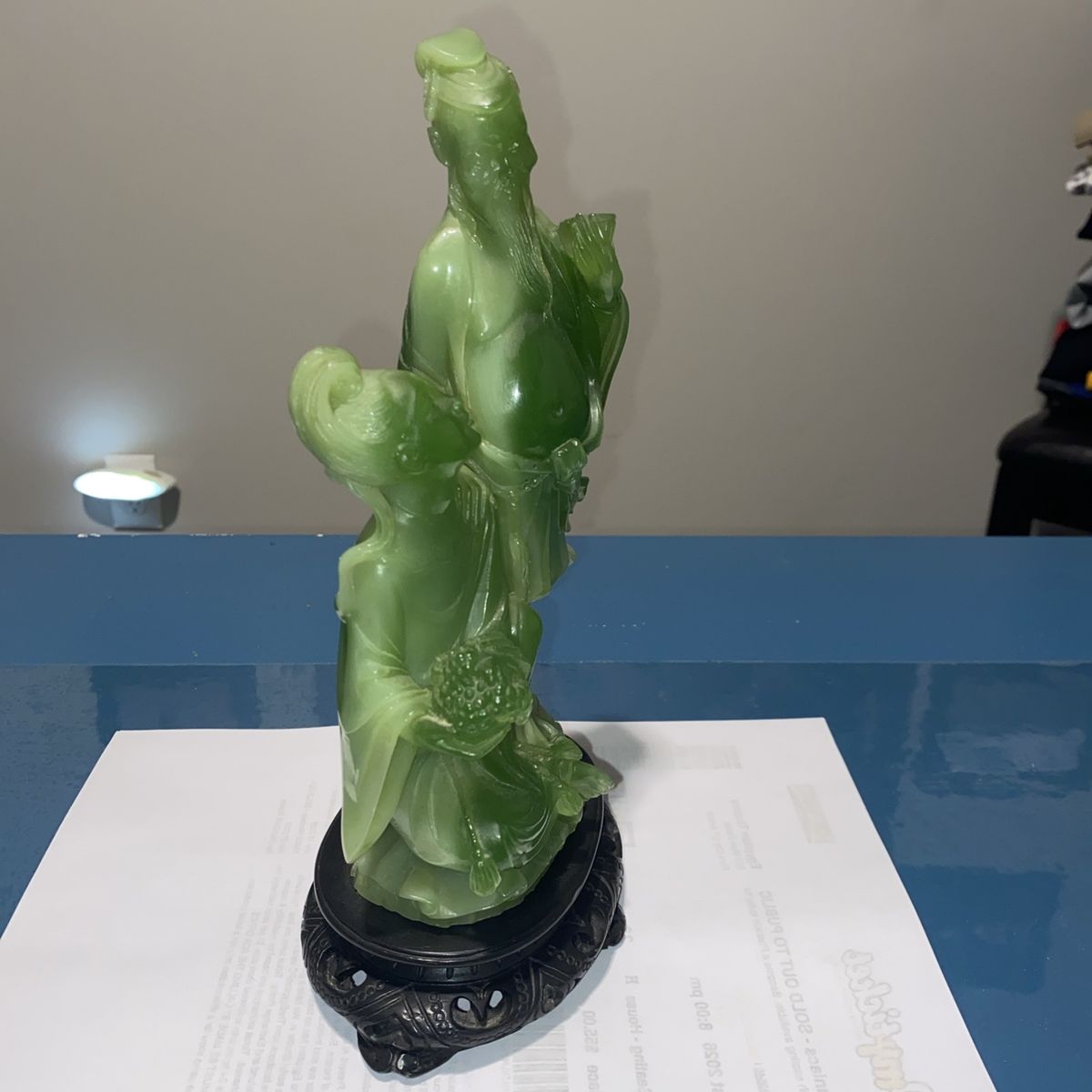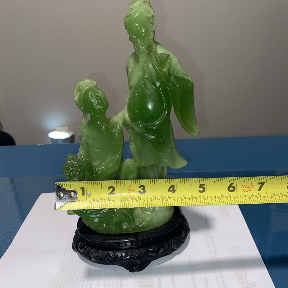 VenmoThis decorative sculpture was produced in Italy during the mid-to-late 20th century as part of a trend of creating affordable Asian-inspired decorative objects for Western markets. Made from resin and finished to imitate natural jade, these pieces allowed collectors to enjoy the aesthetic of carved jade without the high cost of authentic stone. The romantic theme of lovers reflects the Western fascination with Oriental motifs and romantic imagery that was popular in home décor during the 1960s-1980s. Such pieces were mass-produced by Italian manufacturers like Wony, who specialized in faux jade and other decorative resin sculptures. These vintage resin sculptures appeal to collectors of mid-century decorative arts, Asian-inspired home décor, and Italian manufactured collectibles. They are valued for their nostalgic charm, craftsmanship in resin casting, and their role in documenting the cross-cultural aesthetic trends of the period. Collectors of vintage home décor and those interested in the history of mass-produced decorative arts find these pieces both affordable and historically interesting. Cash or Venmo only - I’m in Mapleton but work in Utah & Salt Lake County daily and could meet near you. Thanks for looking! Well cared for in a curio cabinet. It is beautiful.