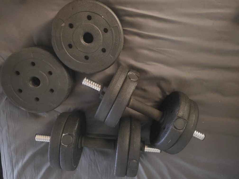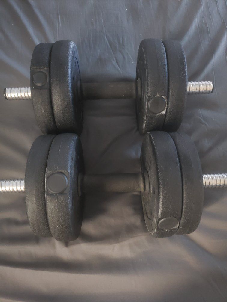 PayPalBarely used dumbbells set for sale. Comes with 4 additional plates plus the 4 on each bar. All plates are removable. Weight plates are 4 2kg and 4 2.76kg. 8 plates in all. Looking to move them asap contact if interested.