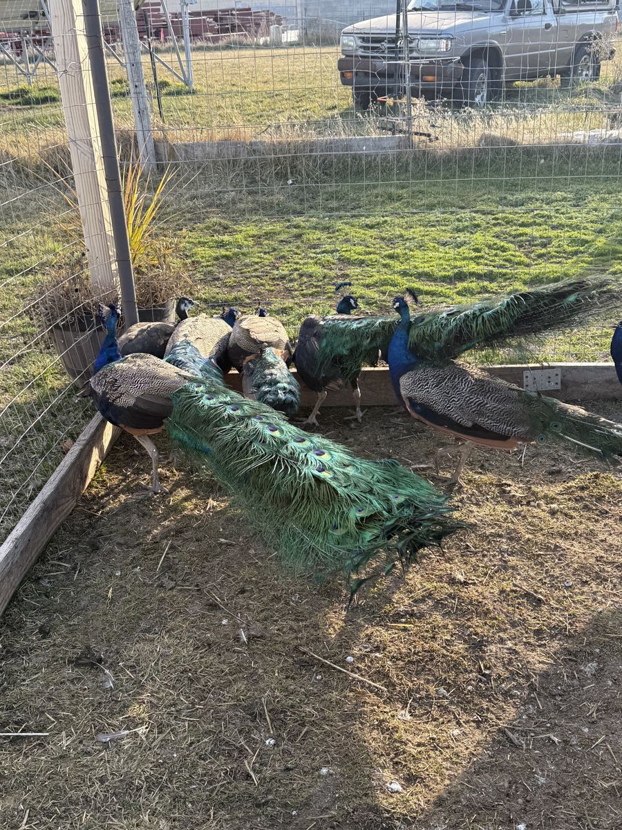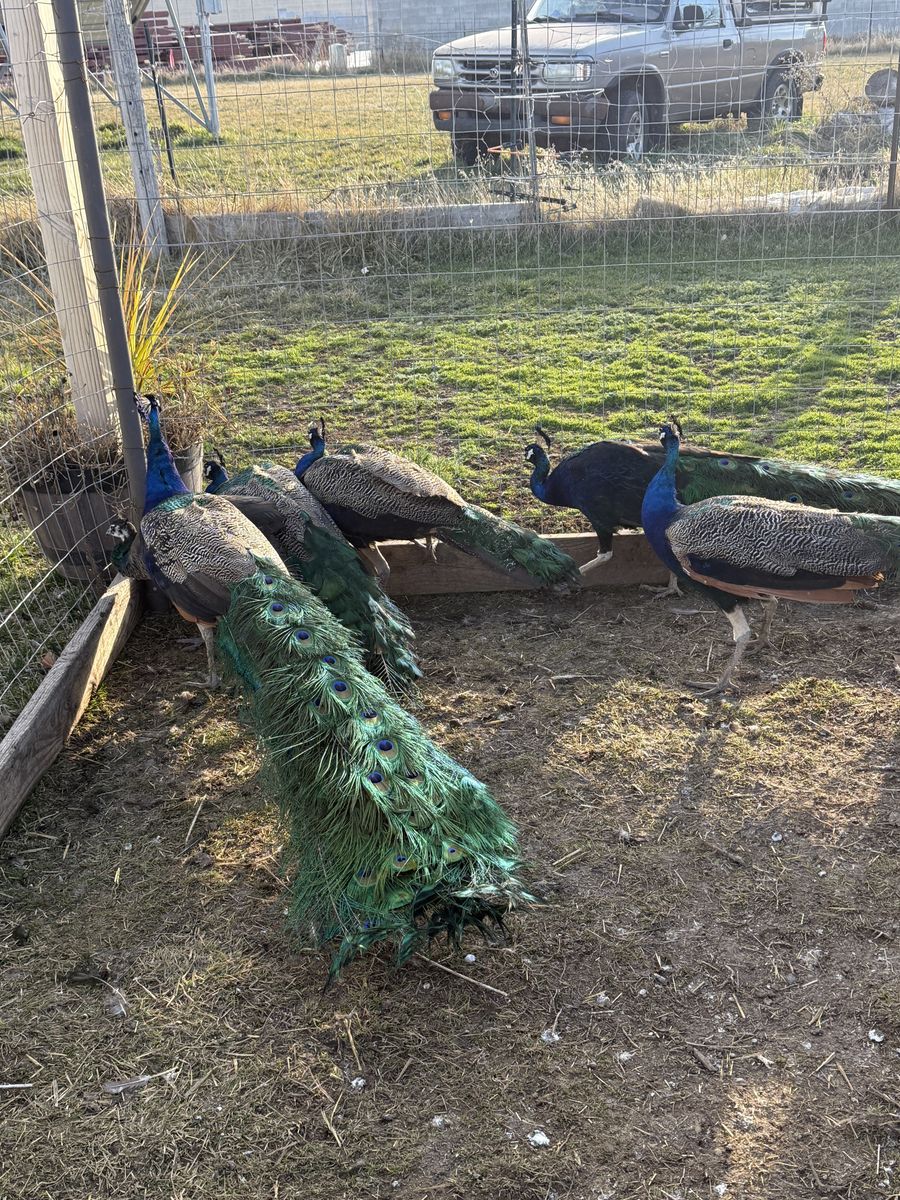 ApplePayBeautiful peacocks available! We have a variety of ages, and they are healthy, alert, and ready for new homes. Males: $120 each