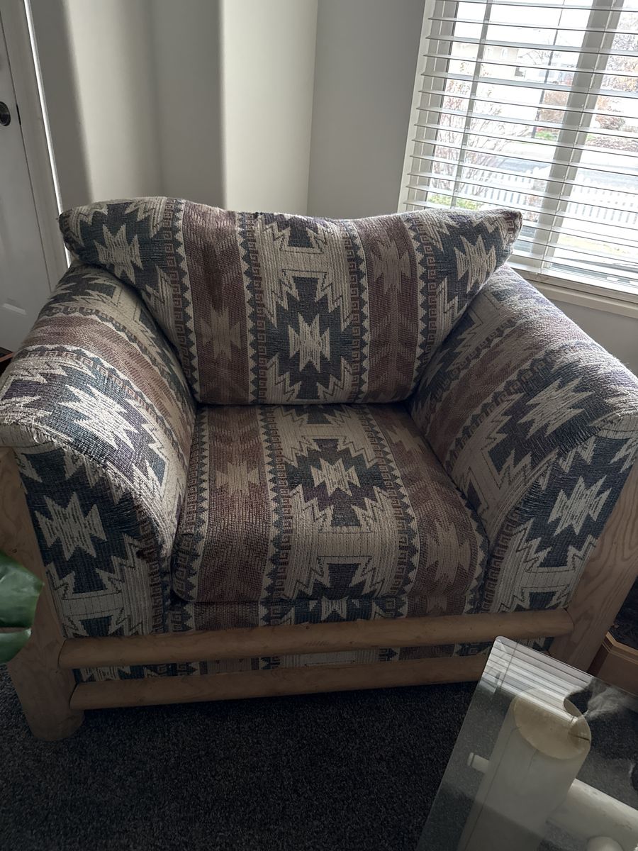 Beautiful Aztec design Couch and Oversized chair. Moving and need to sell. I also have a coffee table that goes with it for an extra $100