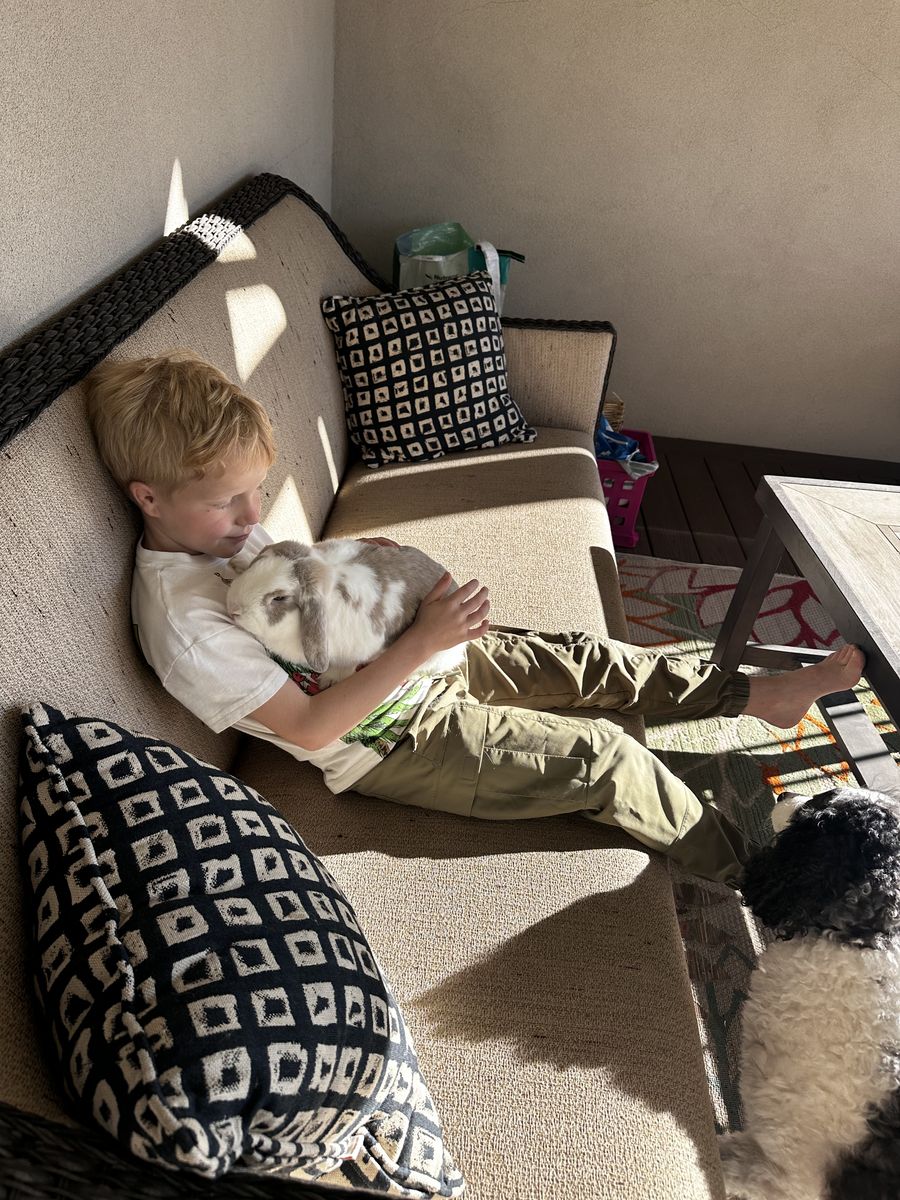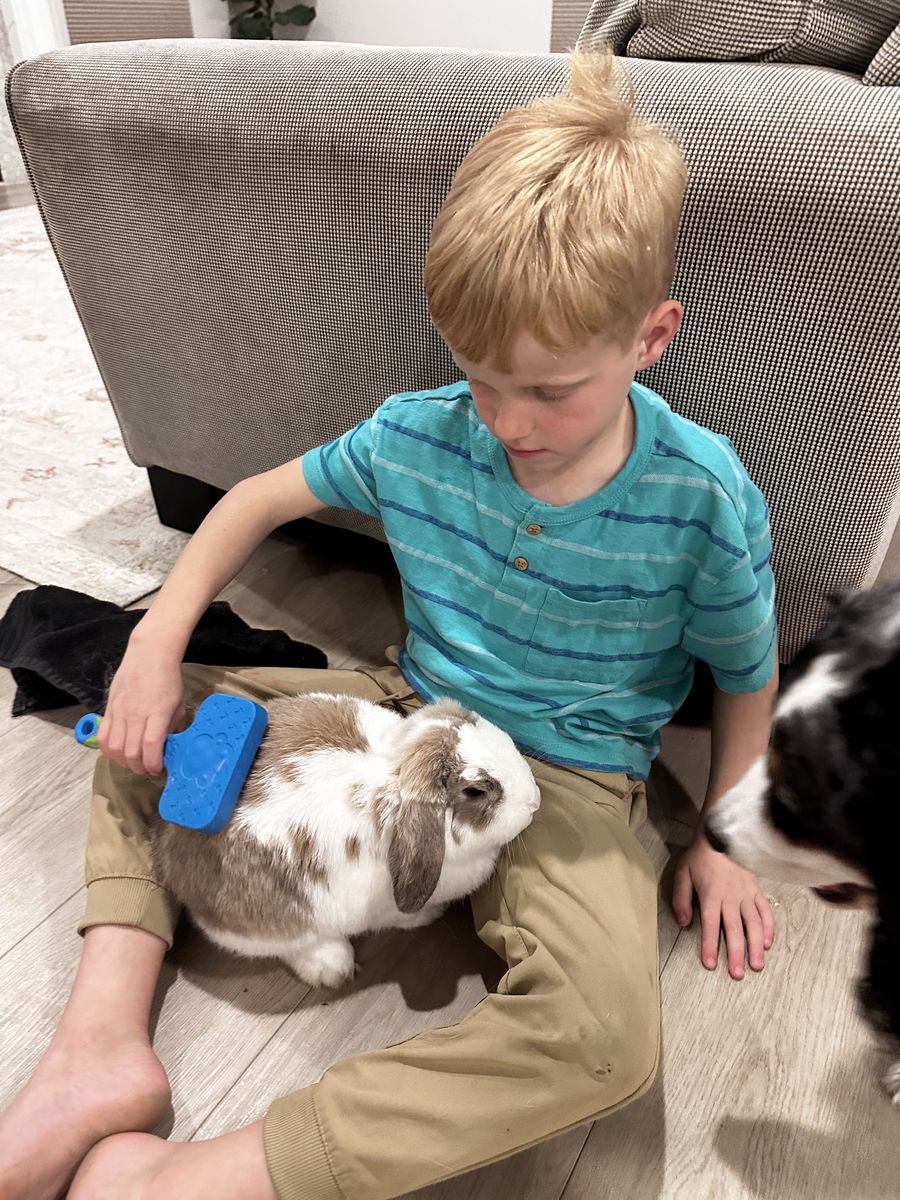 VenmoMeet Dot, my son’s mini lop. We love him but unfortunately my son is super allergic to him. He comes with his harness for walks, litter box, and a small bag of food to get started. He is not scared of dogs and doesn’t mind being held. He really is a sweet guy.