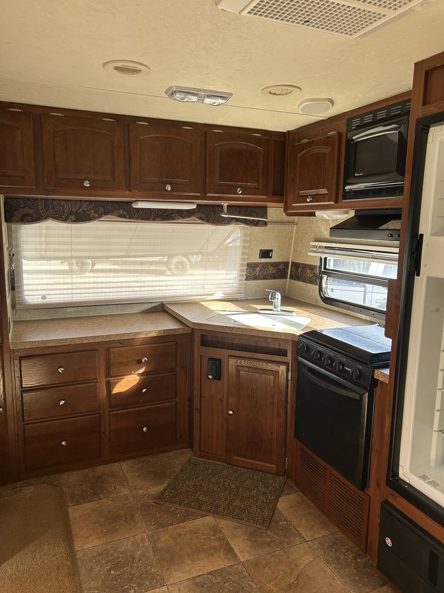 • Hard-to-find front kitchen layout • 2 slide-outs (one in bedroom for extra space) • Solar equipped • Upgraded LED lighting • Lots of storage • Everything works great