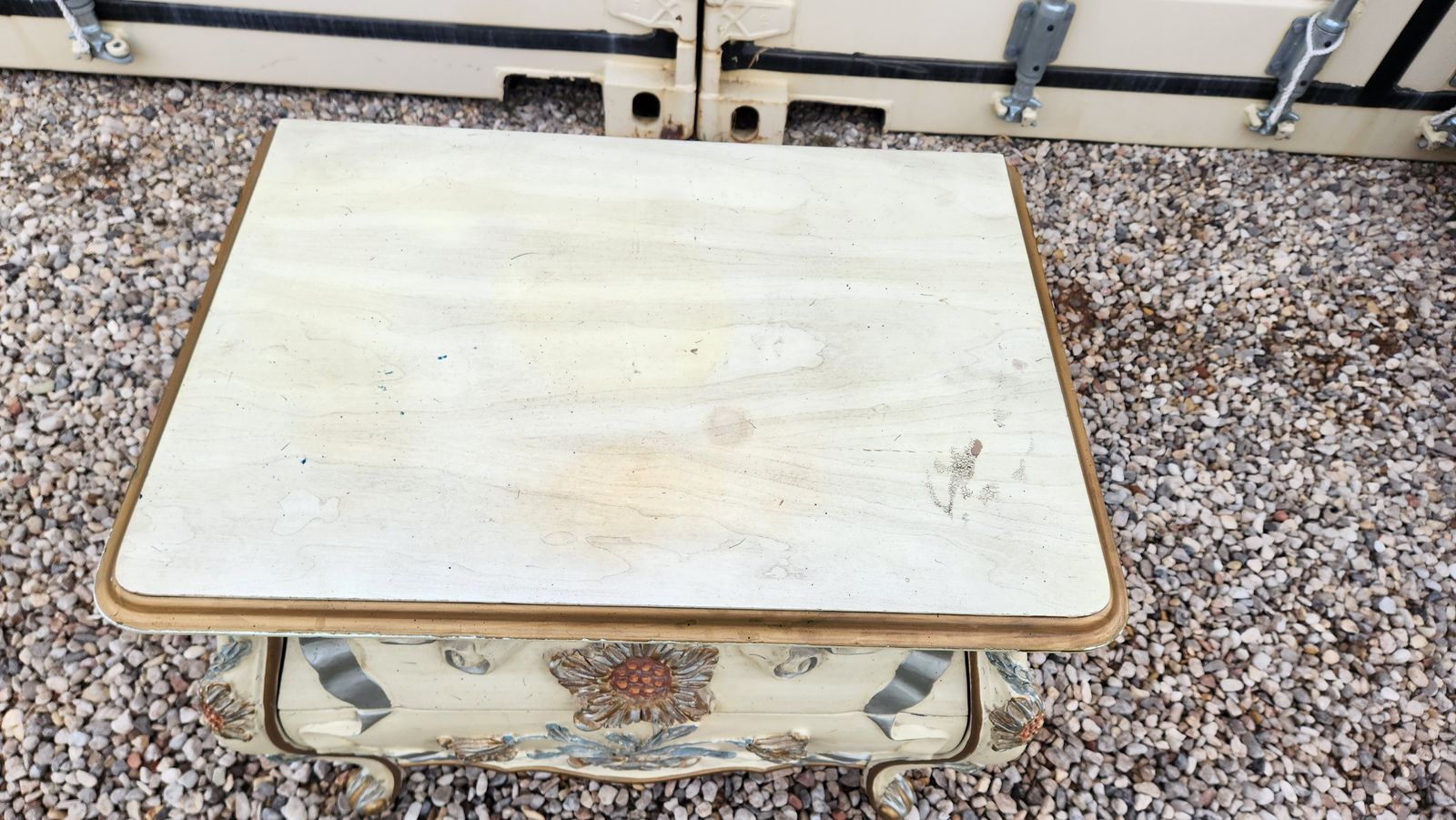 Uniquely carved and painted nightstand. There is also a head board that matches if you are interested.