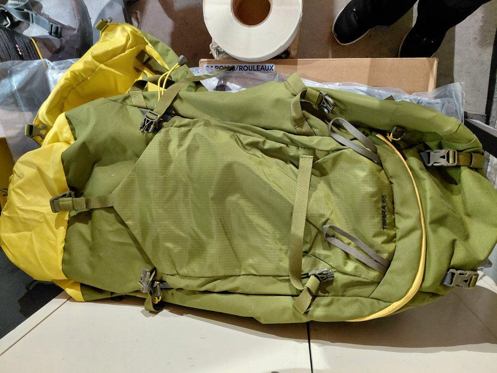 65L internal frame pack Suitable for backpacking Shoulder harness is padded for ease of carrying Top, side, and sleeping bag pack access Zippered side and sleeping bag compartments secure gear 7+ pockets for optimal storage space