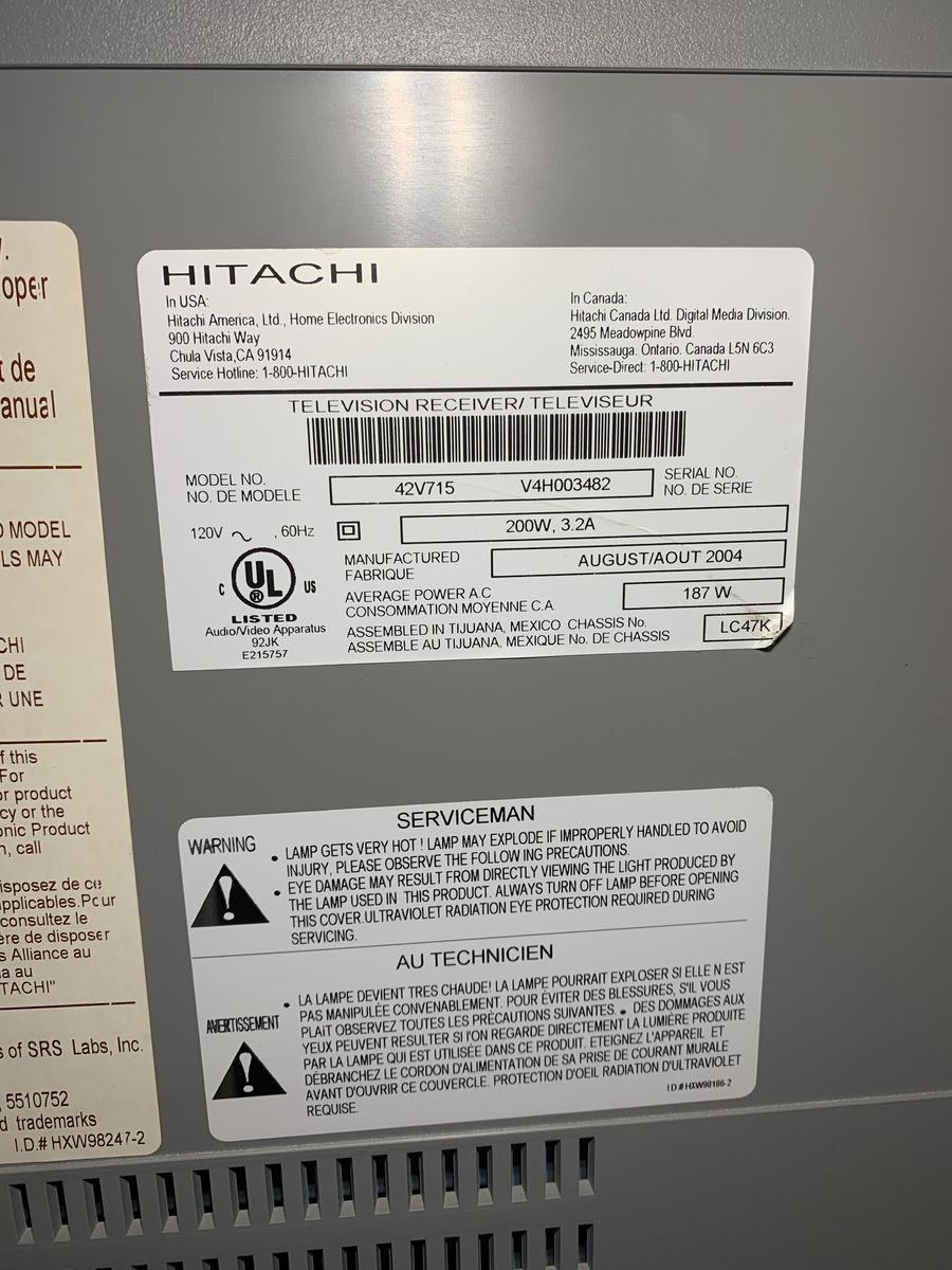 42” Hitachi 42V715 Rear Projection TV. Turns on and works great. Very clean for its age. Includes remote & manual that have been with the TV since purchased. I’m asking $30 cash for the TV, with remote & manual only. If you’re interested in the swivel stand, I am asking $50 all together with the TV. Willing to sell the stand separately by itself for $30. Open to trades of greater value. Preferably new sealed Pokémon products or new sealed video game products. Located in Orem UT.