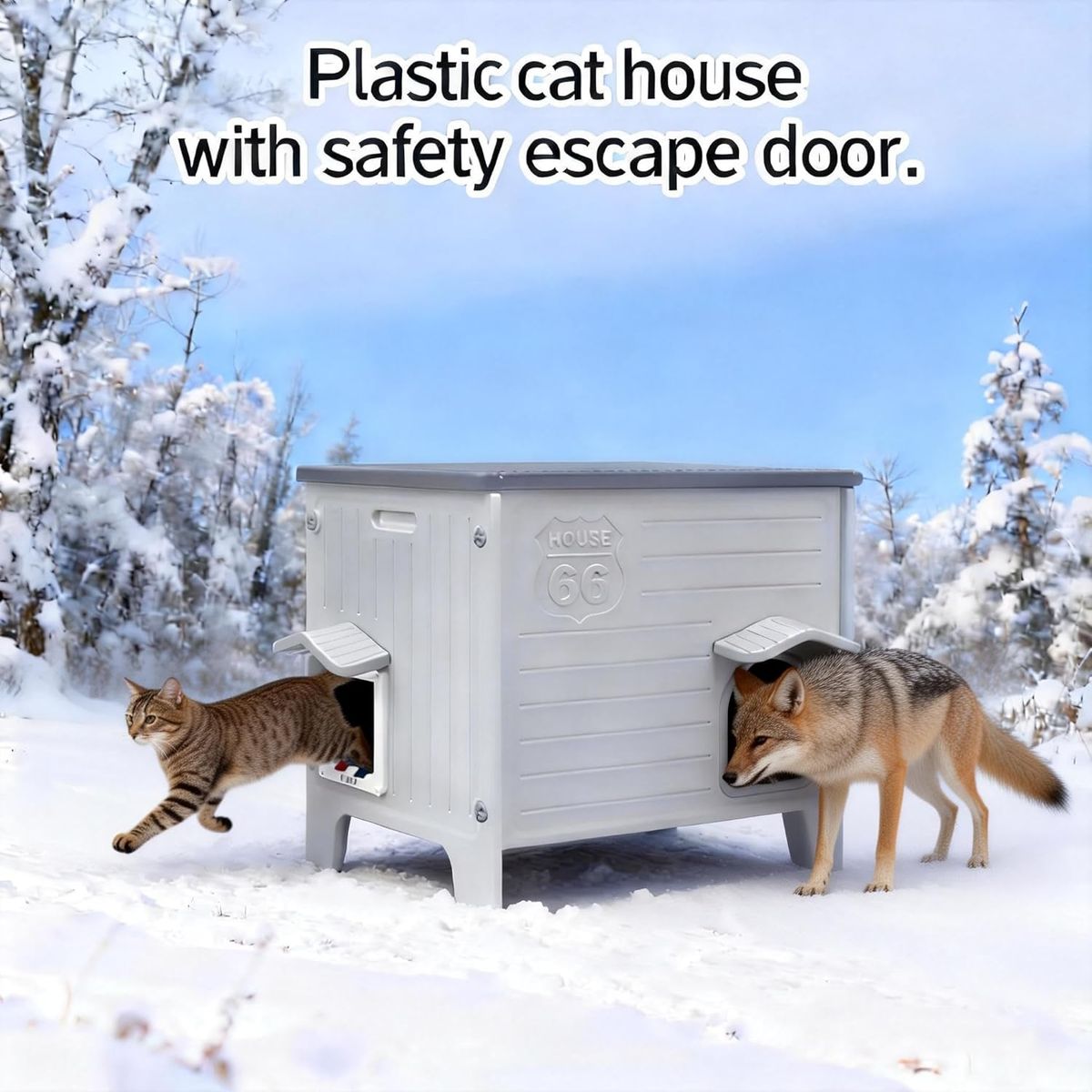 Escape Door Design: the cat house with an escape door, It allows cats to quickly exit if threatened (e.g., by other animals or trapped heat), reducing stress and injury risks. The dual-entry design also improves ventilation and prevents territorial conflicts in multi-cat homes. For outdoor use, it’s a lifeline against predators