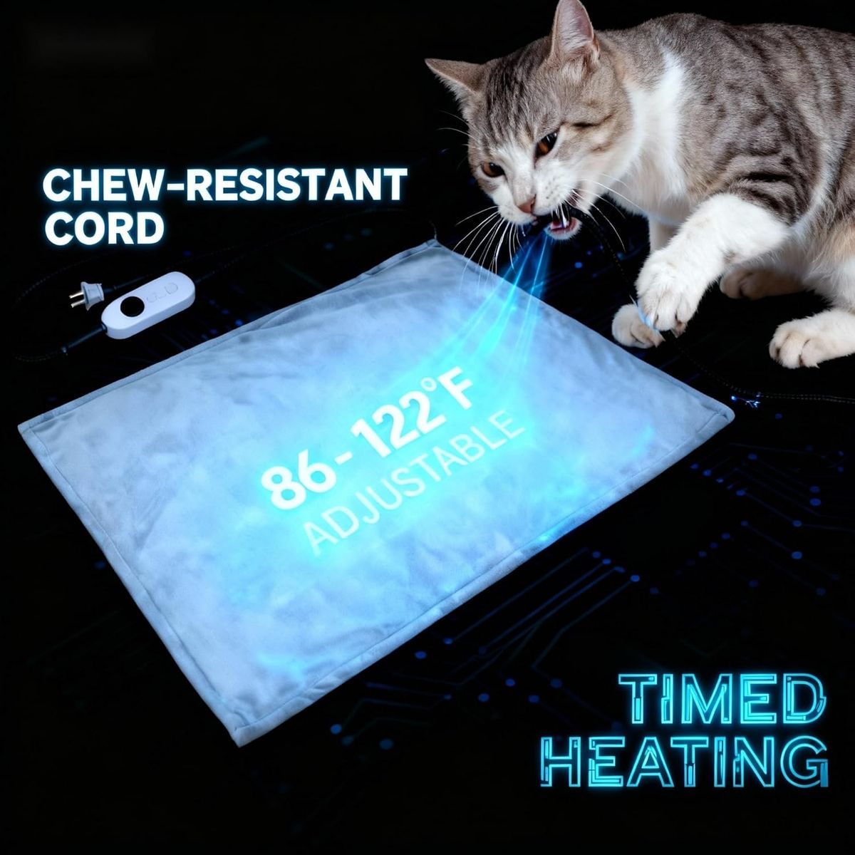 About this itemElectric Heating Pad: This plastic cat house comes with a cushion and heating pad, blending comfort and warmth for your cat. The pad offers 86-122°F for a cozy space, while the soft cushion provides a comfy spot to curl up. It also has a timer for setting heating duration (adding flexibility) and is winter-designed to keep cats warm safely.