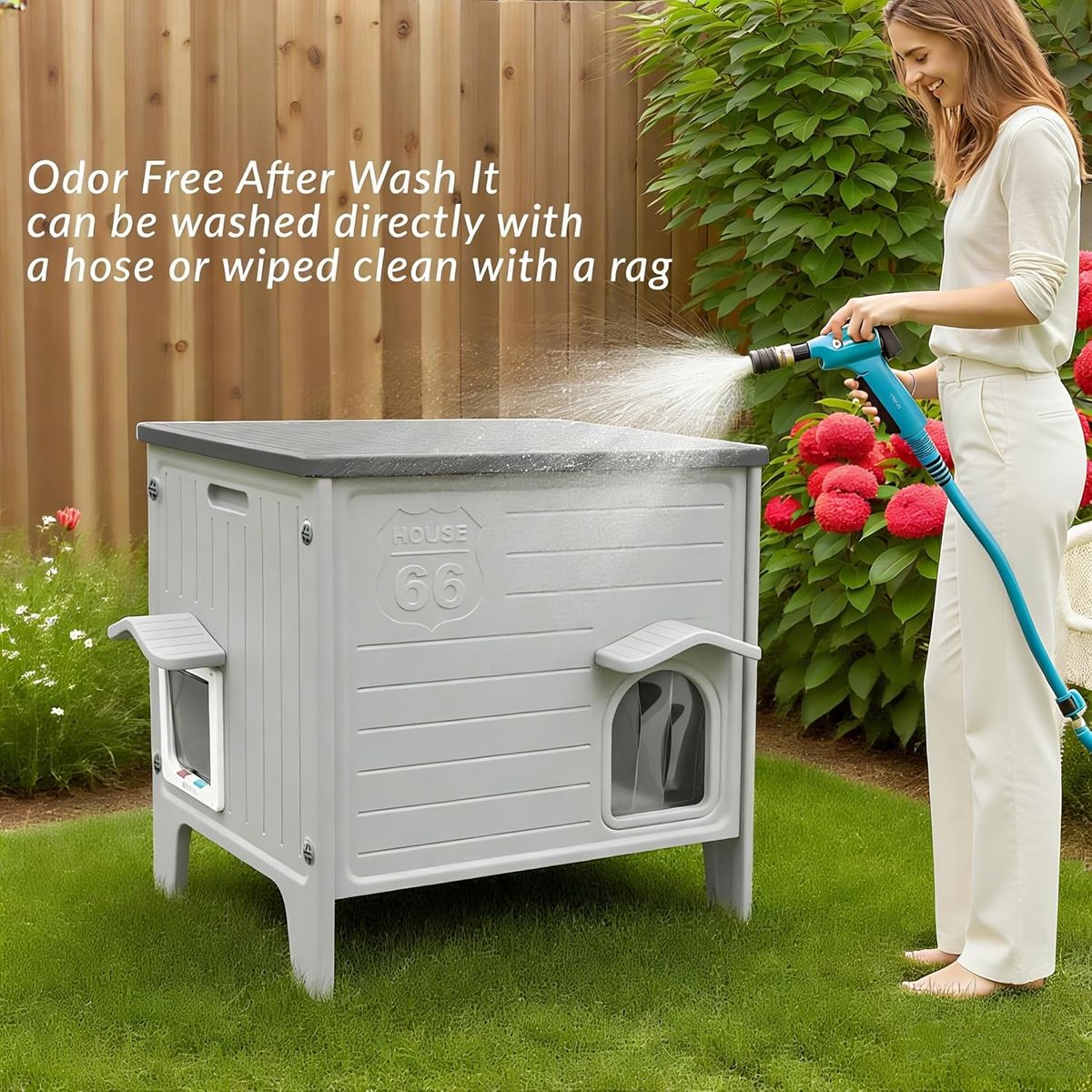 Ideal for outdoor use: due to their weather resistance, durability, and convenience. The waterproof material prevents rain damage, while UV-resistant plastics avoid sun fading. The elevated design keeps cats dry on damp ground, and the lightweight structure allows easy relocation. Unlike wood, plastic won’t rot, warp, or attract pests