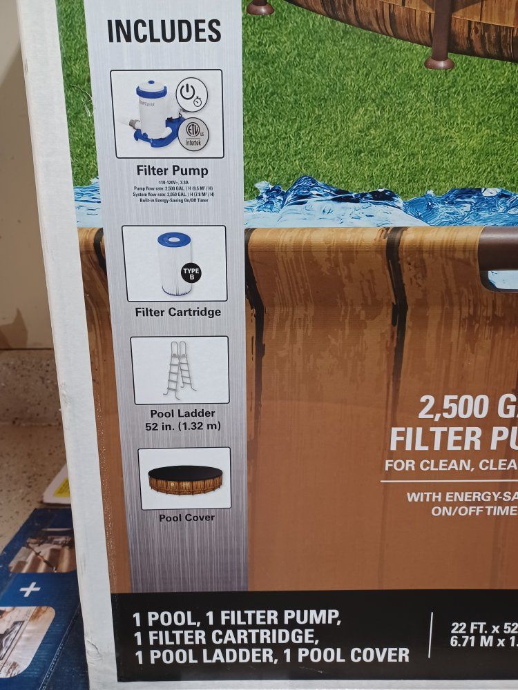 Comes with: Pool pump Water filter Ladder Pool Cover