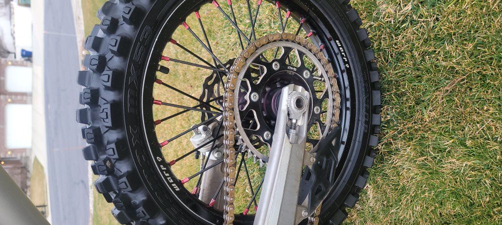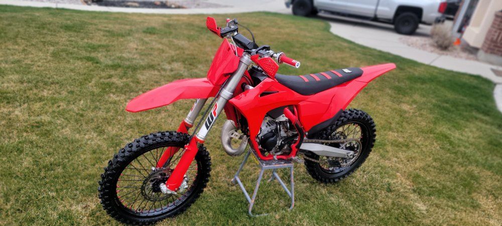 My son grew up and outgrew this awesome Two-stroke beauty. We are the 2nd owners, ask me about the 1st if you're interested. New spark plug and fresh oil change (did both regularly) Only ran Ethanol-free 91 Premium and Amsoil Dominator oil Comes with two sets of wheels, both with great condition tires (son wanted black rims so he saved and bought the Warp 9s in the pics) We put on brand new ODI grips and the Acerbis handguards he didn't use. Upgraded seat cover. Flo clutch and brake levers that are awesome. Brembo brakes, hydraulic brakes and clutch can't be beat. The suspension is amazing too. You won't find many of these. When you buy new, you get the same old assembly, tax, registration, and out-the-door shocking price. If you want to learn to ride a dirt bike well, learning on a 2 stroke 125 is the recipe: it's the best way to learn shifting, clutchwork, throttle, and brakes...