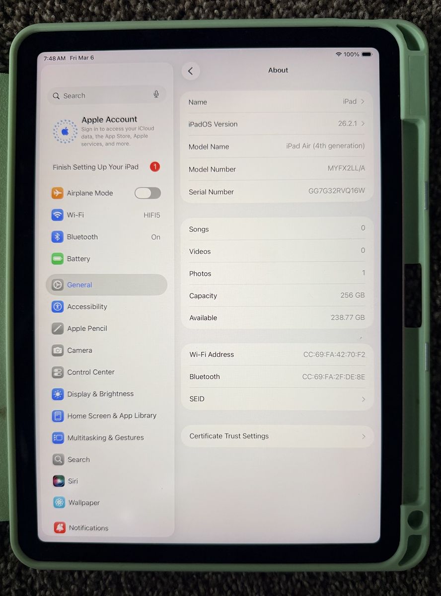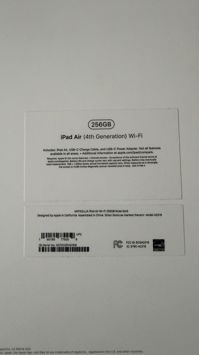 CashAppPerfect condition rose gold iPad Air 4 generation 256gb WiFi only, one owner purchased from Apple Store working great never had any problems. The iPad has case protection good condition no scratches or dent. If you interesting please text me thank you for looking. No shipping Pick up only