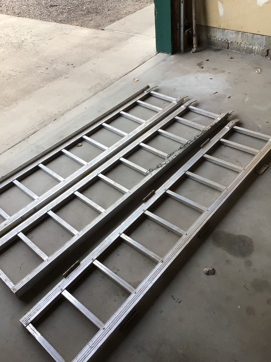 VenmoThree ramps for loading heavy objects into a truck bed. One has hinges to attach the other two.