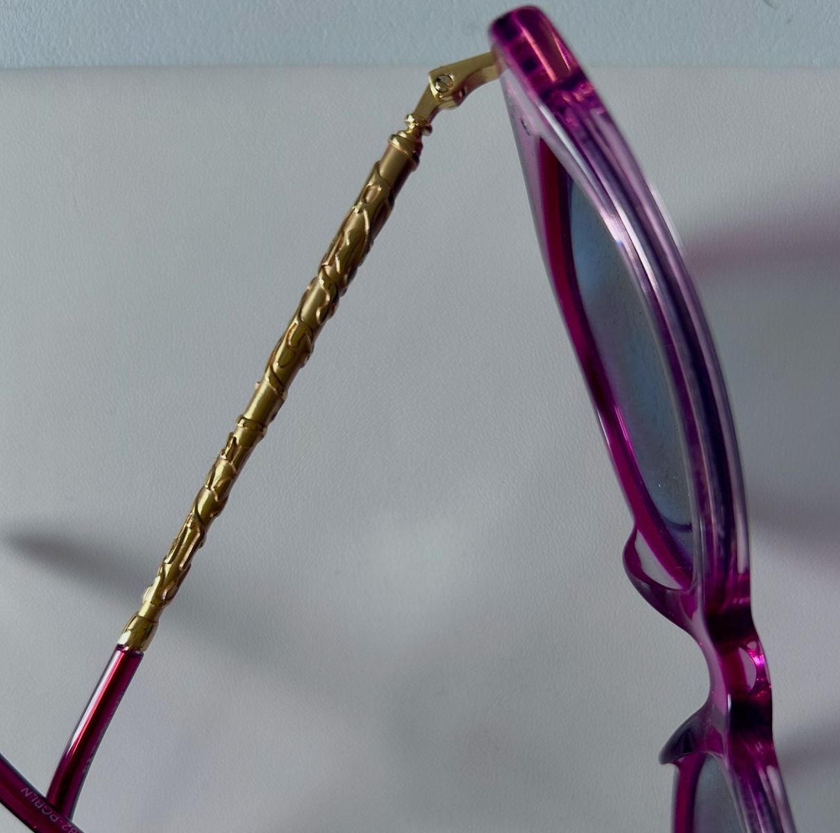 HARRY POTTER COLLECTION It's all about glamour with these chic ombre pink sunnies. The subtle square frame is accented by blue bell lenses for a whimsical feel. • Lens Size: Medium • Polarized: No • UV Rating: 100% UVA/UVB • Lens: Premium Scratch Resistant Polymer • Frame: Hand Cut Acetate And Stainless Steel • Frame Measurements: 55mm-18mm-145mm
