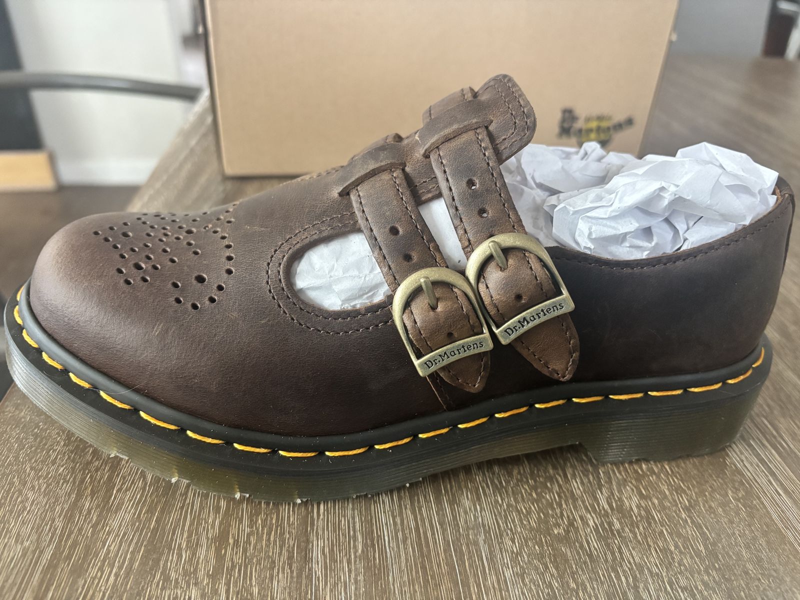 VenmoBrand new, unworn, original packaging. Size 7 dark brown Crazy Horse Mary Jane shoes.