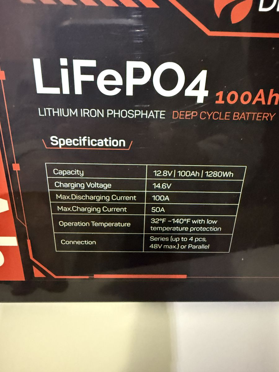 VenmoFor sale is this Dr. Prepare LiFePO4 12.8V/100Ah/1280Wh Deep Cycle battery. I purcased it approximately 6 months ago to power a small trolling motor on my kayak. I have probably used it only 4 or 5 times. It has a small LCD screen to monitor battery status.