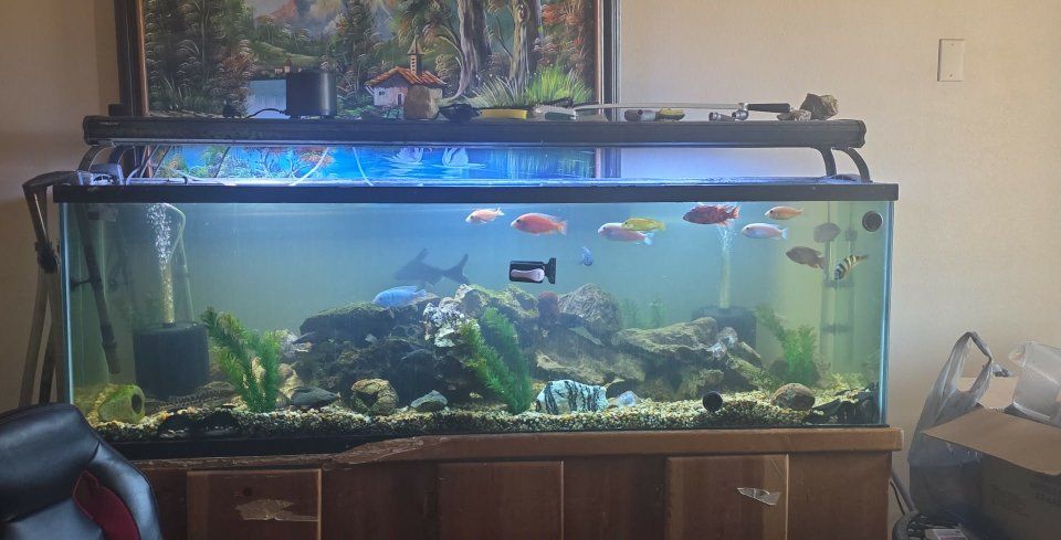 125 gallon aquarium with stand, two canister filters, two sponge filters, all decor and gravel along with several rare fish. fish included are ripsaw catfish, tiger shovelnose catfish, marble goby, iridescent shark, and several African cichlids including OB peacock, electric blue jahani, as well as a bumblebee catfish, two featherfin squeakers synodontist catfish, to bristlenose plecos. asking 3,000 for entire setup. No I will not sell fish individually.