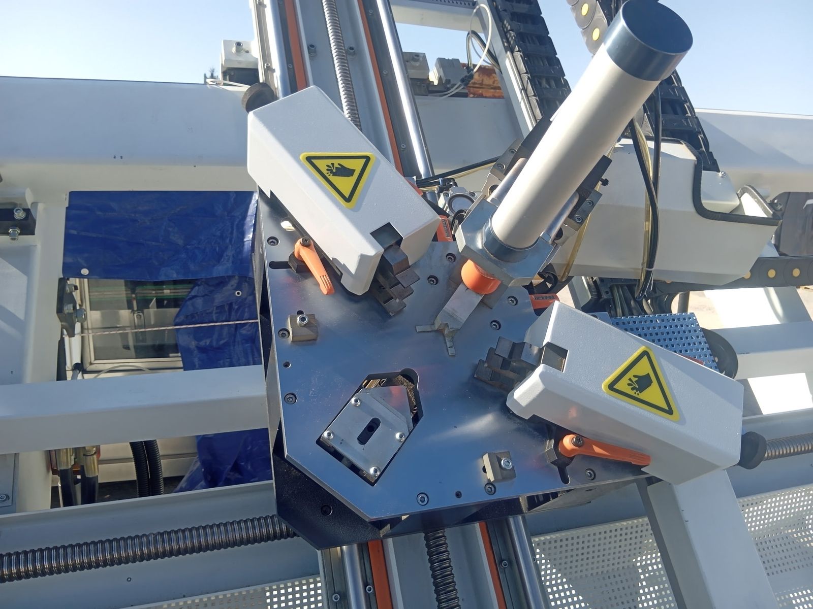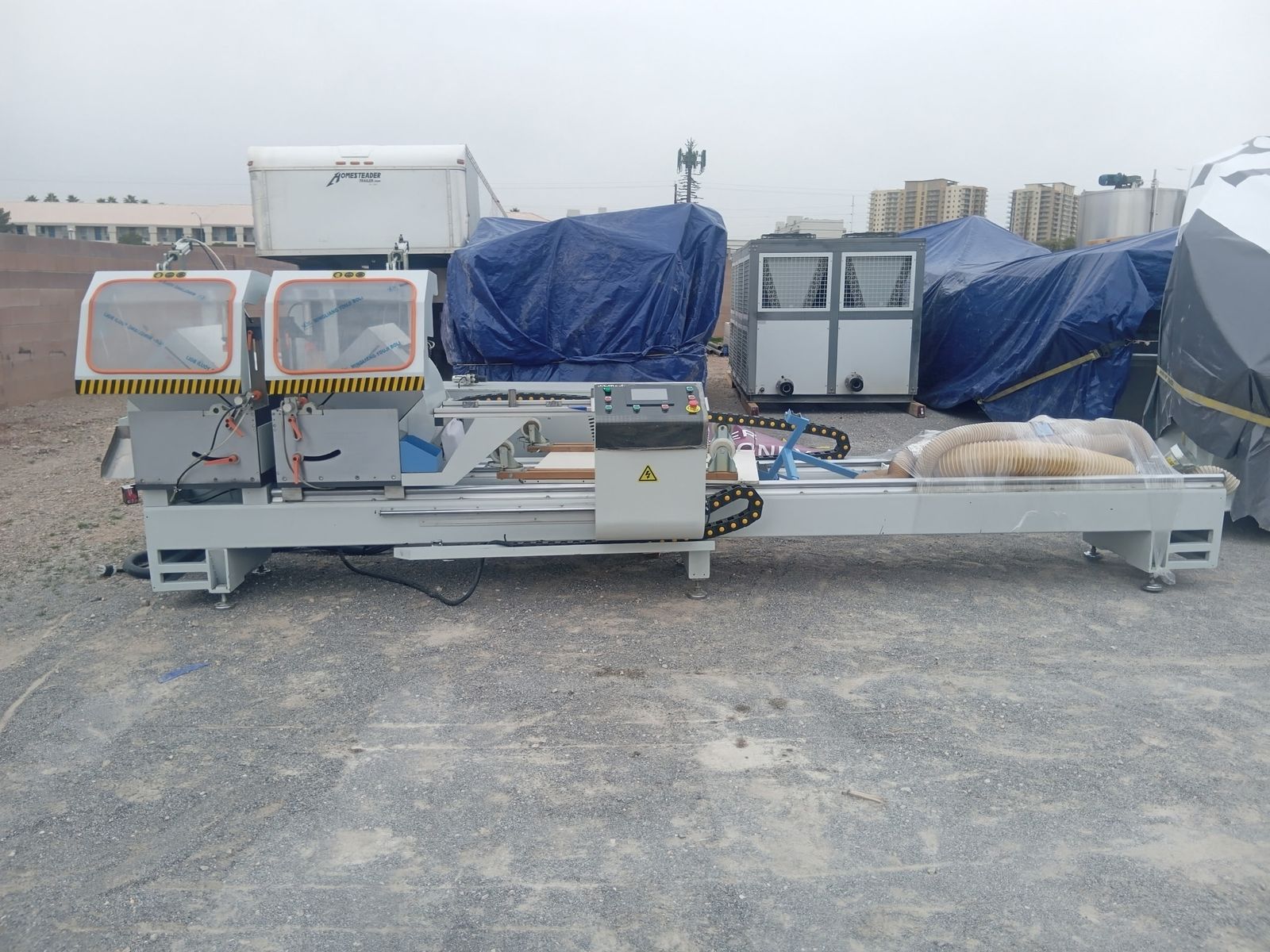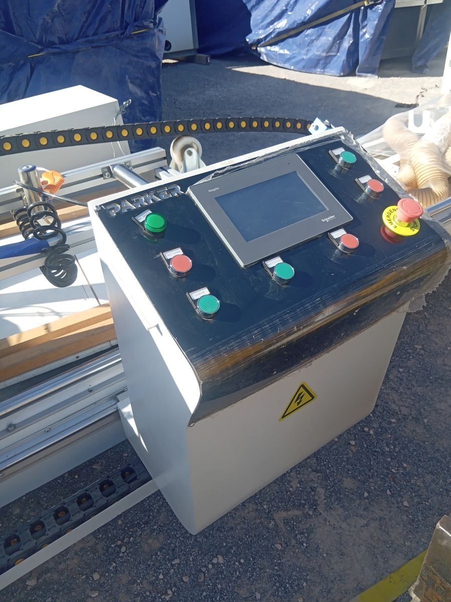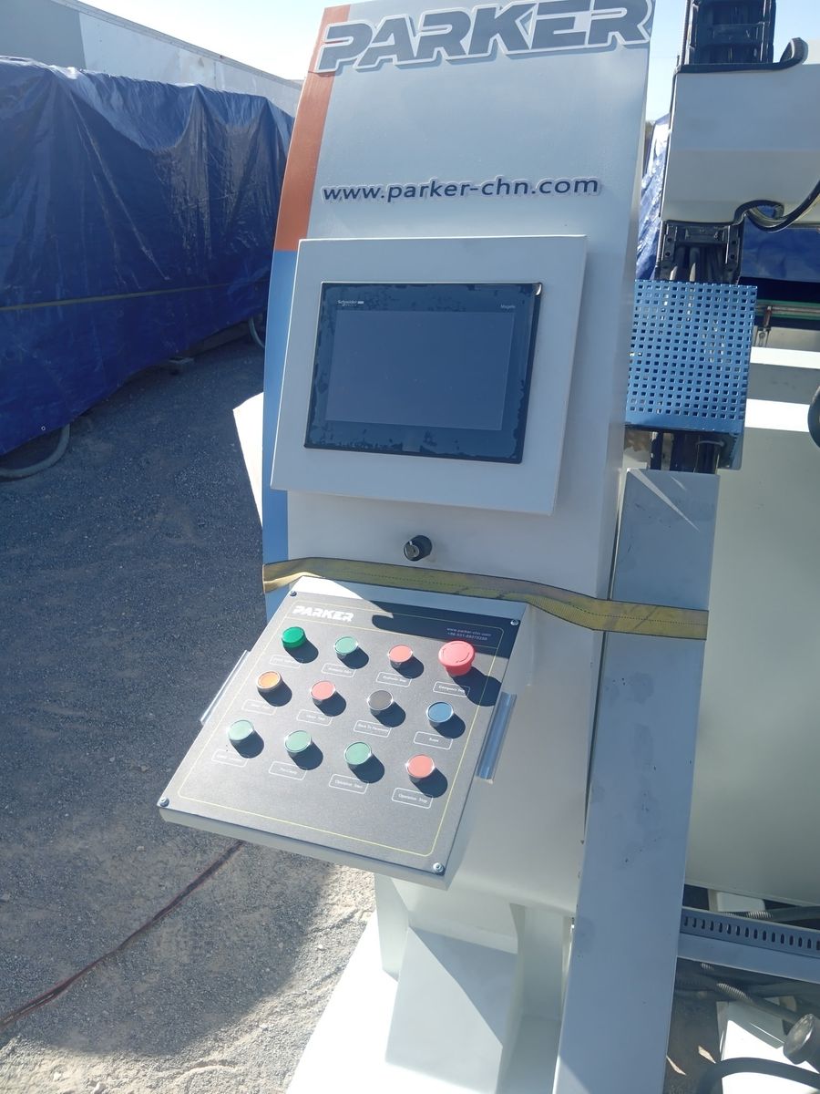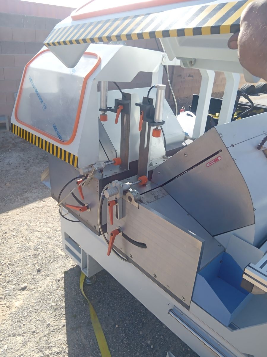 These are two Parker machines, one as a Cnc miter saw, and the other is a Cnc frame crimper for aluminum windows