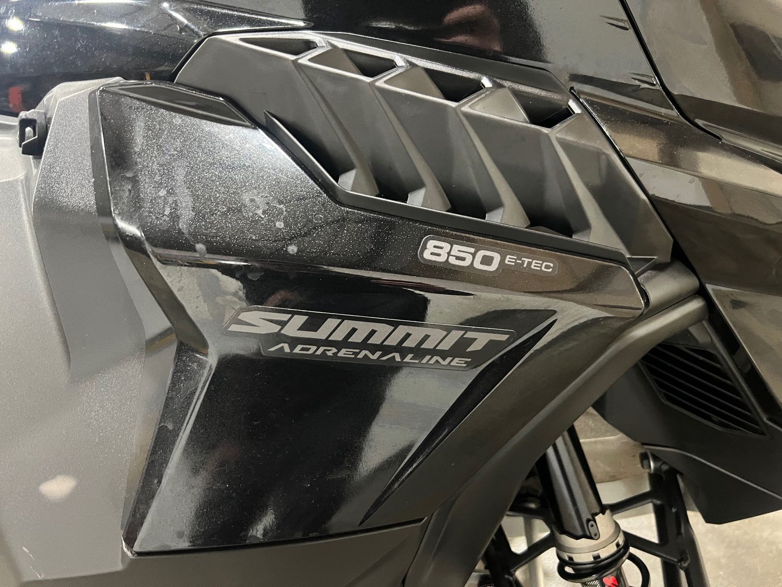 The 2024 Ski-Doo Summit Adrenaline 154 850 2.5 is a mountain-style snowmobile equipped with an 849cc, liquid-cooled, horizontal inline, reed valve, 2-stroke engine. It features a continuously variable transmission (CVT) and is designed for deep-snow performance with agile handling. The snowmobile weighs 454 lbs. and has a displacement of 849cc. The Summit Adrenaline is powered by the 850 E-TEC Turbo R engine, known for its instant response and breathtaking acceleration. It also includes a high-resolution infotainment system, TMOTION X & XT rear suspensions, and a RAS 3 front suspension for ride quality. This sled has 1639 miles, it is equipped with a skid plate and is priced at $10,700 Plus Tax, Licensing and Dealer Fees. Stock# S00008-U-1, dealer#0498. Give us a call at 435-783-8360.