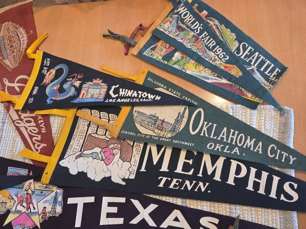 Venmoawesome collection of souvenir pendants. several of these are tourist destinations, some are State pendants, and a few are sports. I would think they are all from the 40s and 50s and maybe one or two into the very early 60s. about 60 pendants in all. most are in very good condition. only two are ripped and would need repair. most are full size but a few are small. possibilities for display are endless. together or separately they are beautiful. I'm sure some are worth more than others. I am selling them as a complete lot. would be great for a reseller. a few I have checked have significant value, but I am not well versed on values for these so feel free to make an offer. thanks
