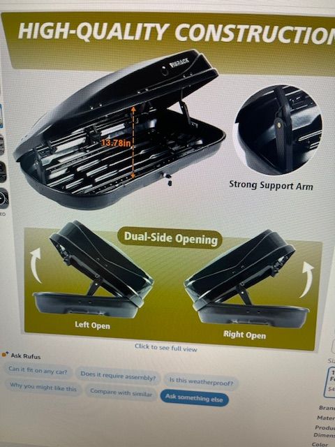ZelleHard Shell Rooftop Cargo Carrier with Roof Box, Heavy Duty Weatherproof 13 Cubic Feet Rooftop Cargo Carrier for Car Storage, Black