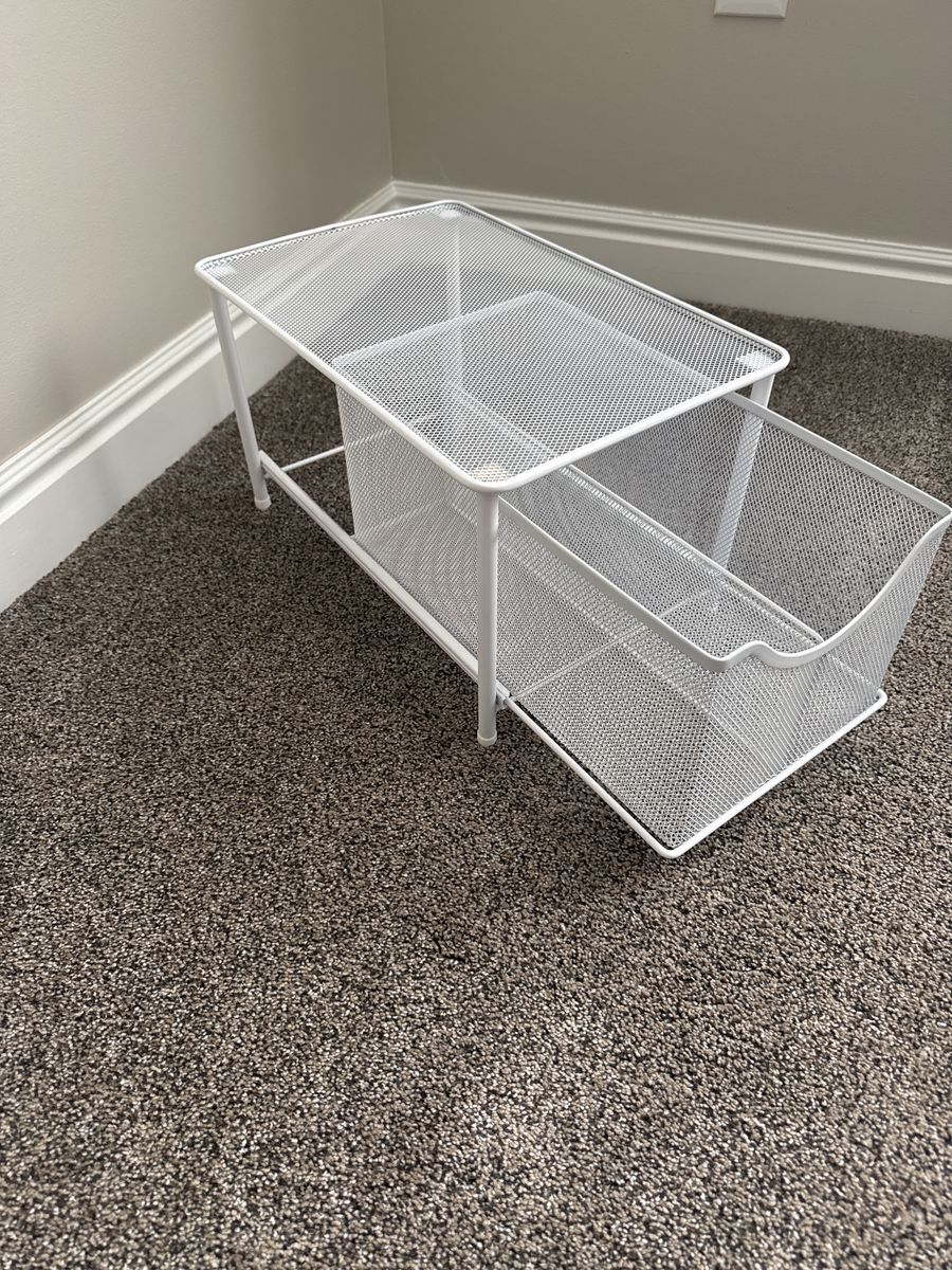 VenmoWhite bathroom caddy. Dimensions: 16” long, 10.5” wide, 9.5” tall.
