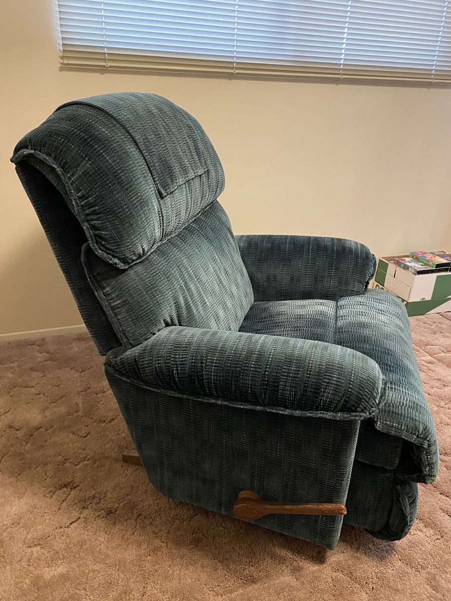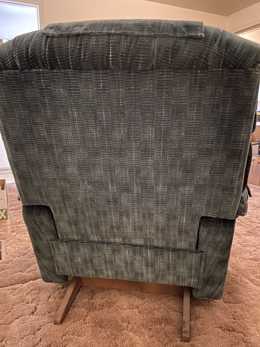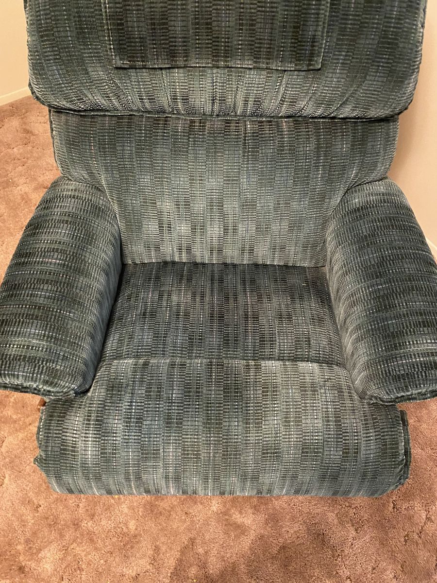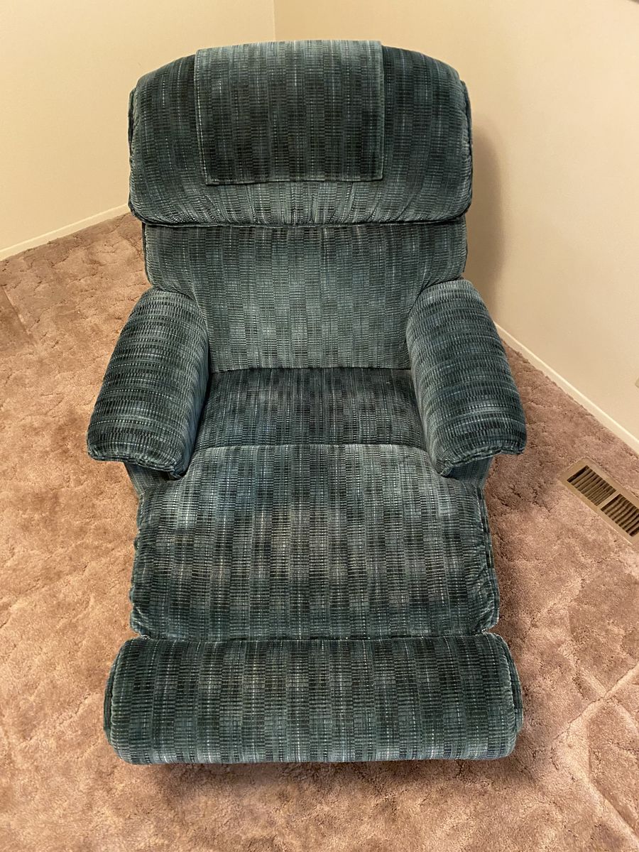 Matching green Lazy-Boy couch with end recliners and a single recliner. Couch has been lightly used and recliner has had minimal use. All are in amazing condition. Single recliner: 41" H x 38"W x 36"D. Couch: 39"H x 88"L x 40"D with both ends being recliners. FCFS. Cash only. Thanks for looking!